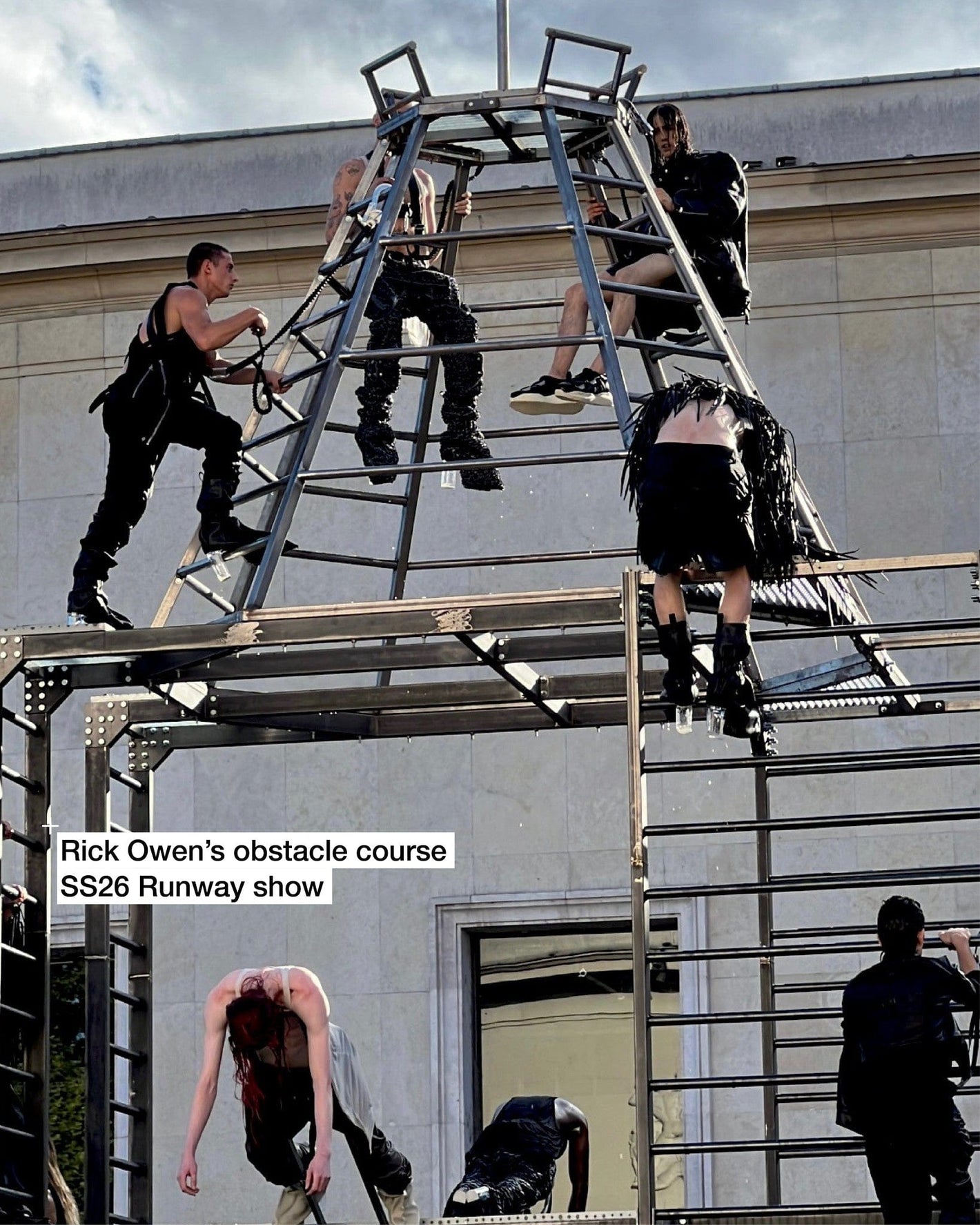 Paris Fashion Week S/S 2026 offered a season of clarity, designers embracing conviction over noise, and storytelling rooted in purpose. Standout moments came from Willy Chavarría, whose HURON collection was a defiant reflection on immigrant identity, complete with bold tailoring, vibrant color, and a powerful ACLU collaboration. Rick Owens delivered a visceral, water-soaked spectacle at Palais de Tokyo, previewing his Temple of Love retrospective with sculptural leather, exposed silhouettes, and subversive romance. Beyond the runway, spaces like the RHIZOME installation by Crosby Studios Gallery x Manyforms and showrooms from ON x PAF and Comme des Garçons showed that meaning and innovation remain central. SS26 made one thing clear, fashion’s most impactful voices are the ones with something real to say