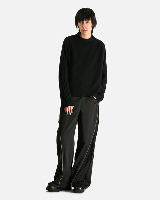 • Ann Demeulemeester Men's Pants Cyrus Asymmetric Waistband Wide Leg Trousers in Black