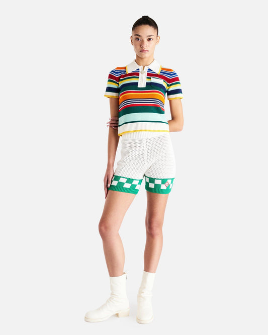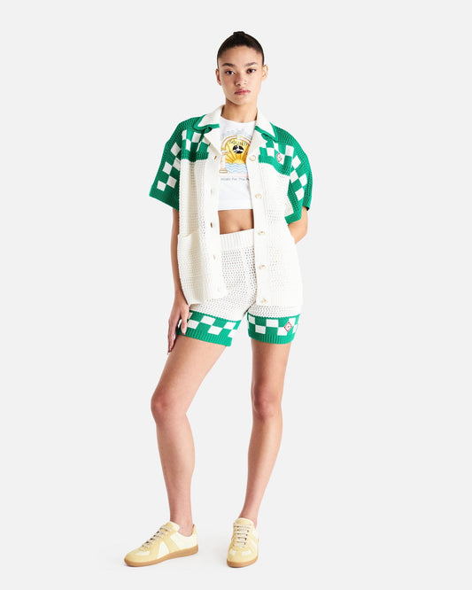 • Casablanca Women Shorts Faux Crochet Shorts in White/Green