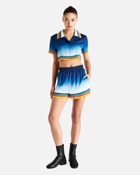 • Casablanca Women Tops Studio De Musique Cuban Collar Cropped Silk Shirt in Multi