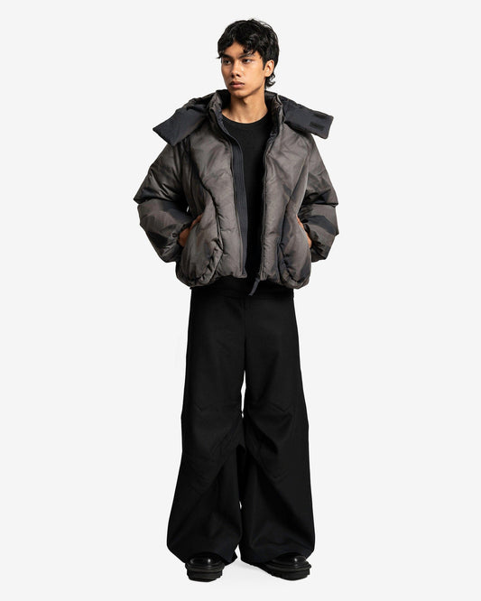• JiyongKim Men's Jackets Sun Bleached Draped Down Jacket in Dark Grey Cotton