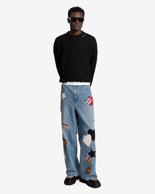 • Marni Men's Sweater Dishevelled Cotton Knit Sweater in Black