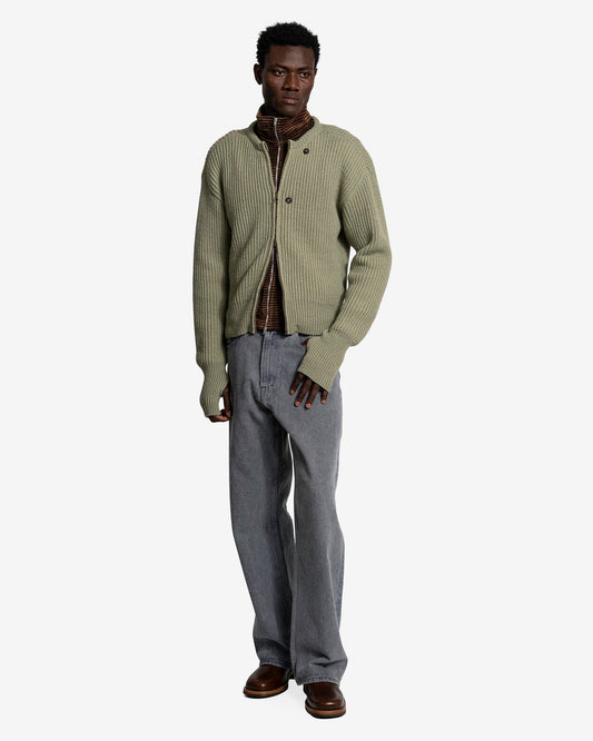 • Our Legacy Men's Sweater Zip Wrap Cardigan in Refined Green Quotidin Wool