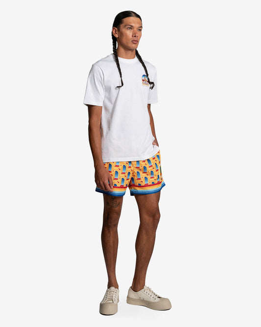 • Casablanca Men's Shorts Arche de Jour Printed Swim Trunks in Yellow/Multi