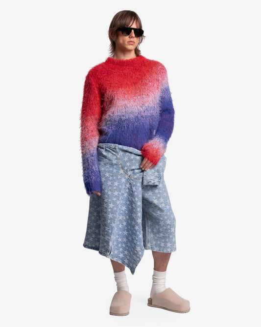 • ERL Men's Sweater Degrade V-Neck Knit Sweater in Blue/Red/White