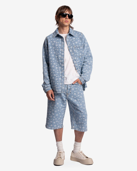 • ERL Men's Shorts Denim Jacquard Woven Shorts in Light Blue