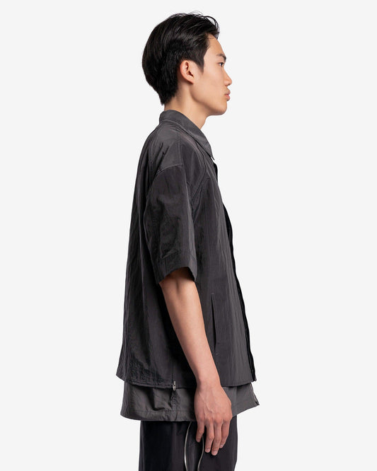 • Juun.J Men's Shirts Double Layered Short Sleeve Zip-Up Shirts in Grey
