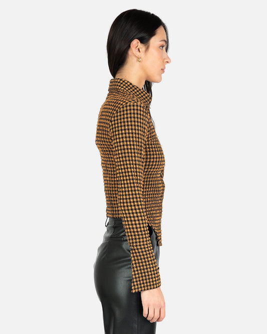 • Nanushka Women Tops Saro Checked Seersucker in Dark Brown