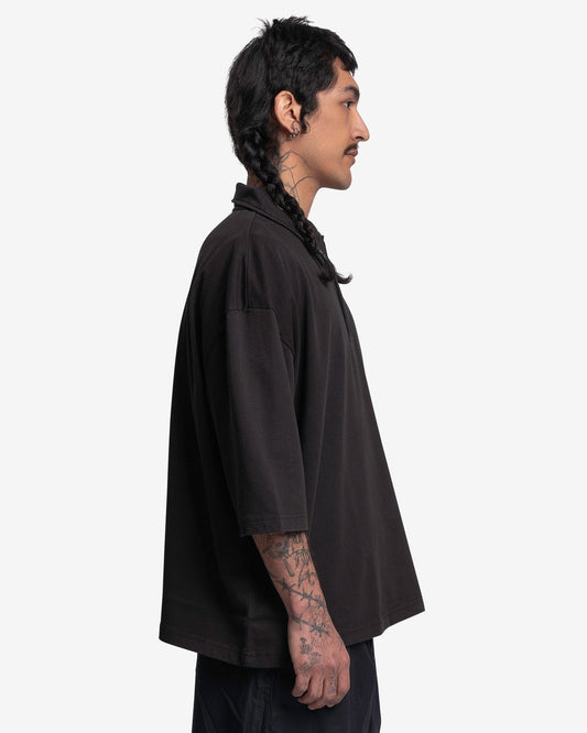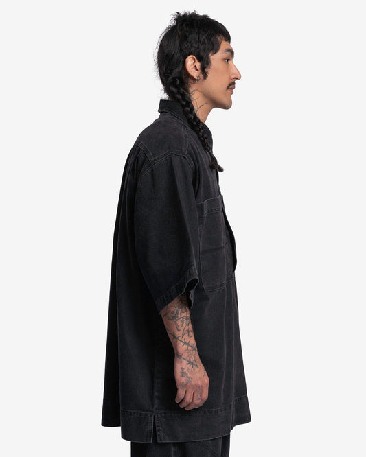 • Willy Chavarria Men's Shirts Zip Placket SS Shirt in Washed Black