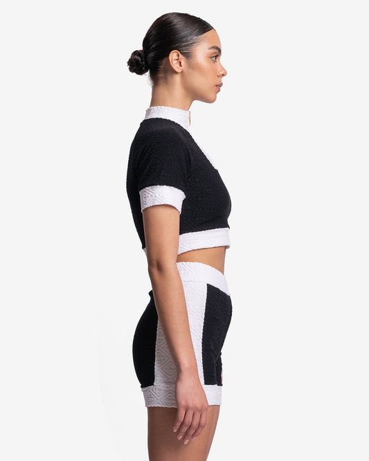 • Casablanca Women Tops Monogram 3D Textured Cropped Top in Black