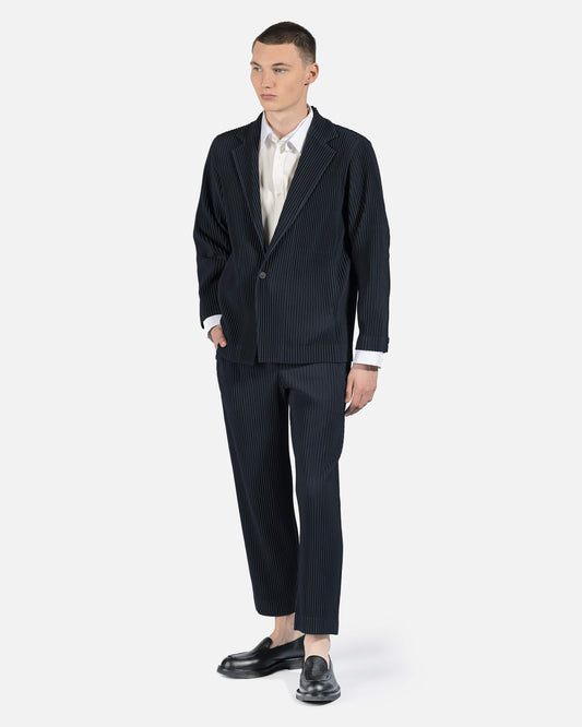 • Homme Plissé Issey Miyake Men's Pants Basics Pleated Trousers in Navy