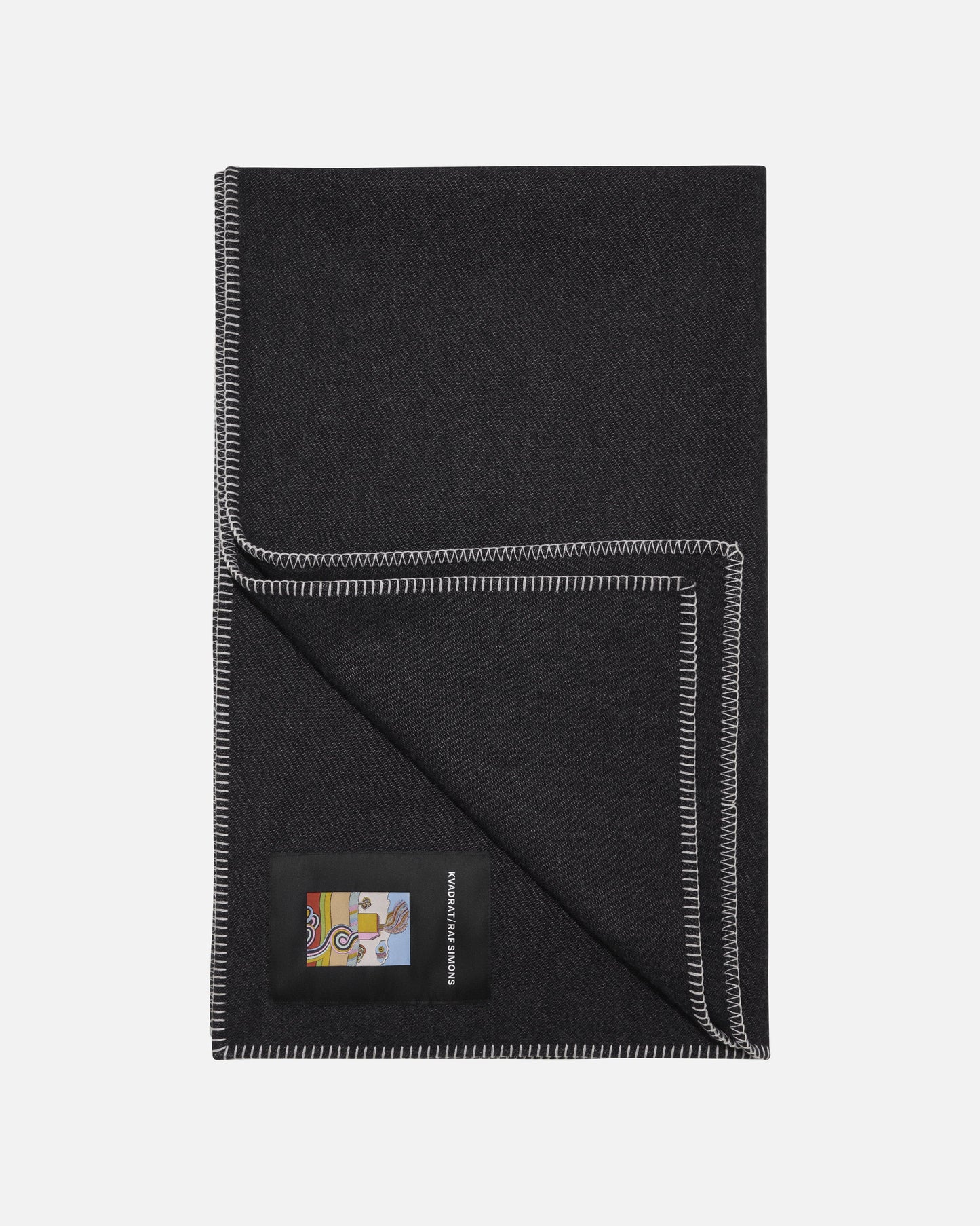 Kvadrat/Raf Simons Lambswool Throw in Black. This blanket features a lambswool composition with contrasting whipstitch edge.