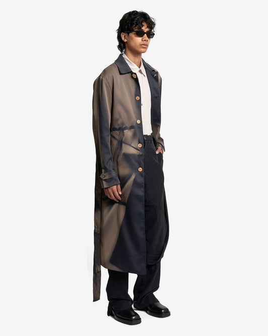 • JiyongKim Men's Coat Sun Bleached Belted Mac Coat in Dark Green Satin
