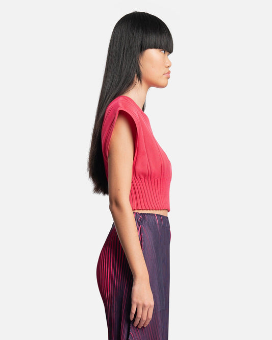 • Pleats Please Issey Miyake Women Tops O/S Link Knit Vest in Neon Pink