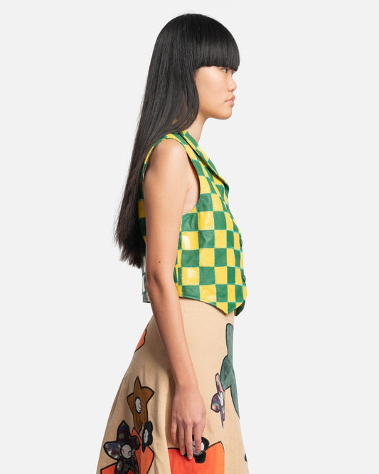 • ERL Women Tops Patchwork Checkers Leather Vest in Yellow
