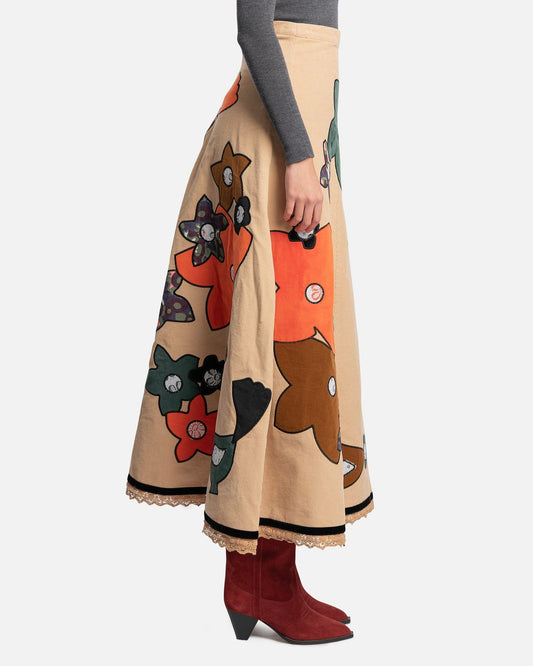 • ERL Women Skirts Women's Applique Corduroy Skirt in Beige
