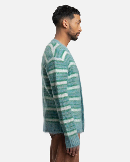 • Marni Men's Sweater Iconic Brushed Striped Cardigan in Turquoise