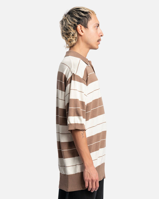 • Willy Chavarria Men's Shirt Striped Polo Sweater in Brown