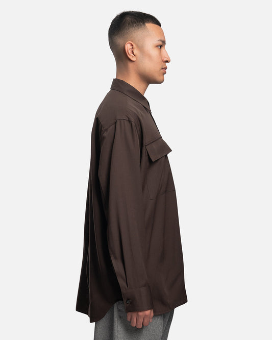 Light Wool Gabardine Shirt in Dark Brown