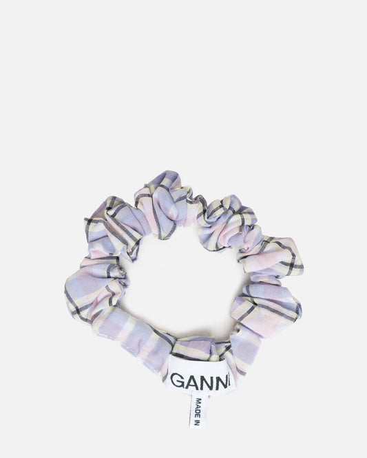 • Ganni Jewelry Seersucker Check Scrunchie in Check Persian Violet