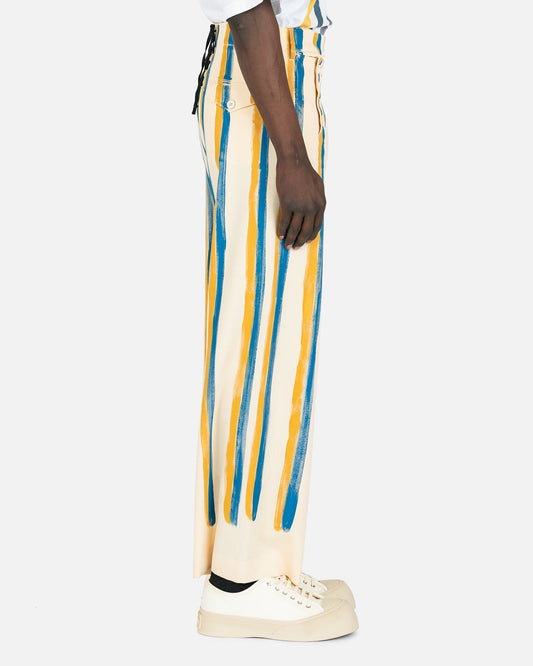 • Marni Men's Pants Watercolor Stripe Sailor Pants in Antique White