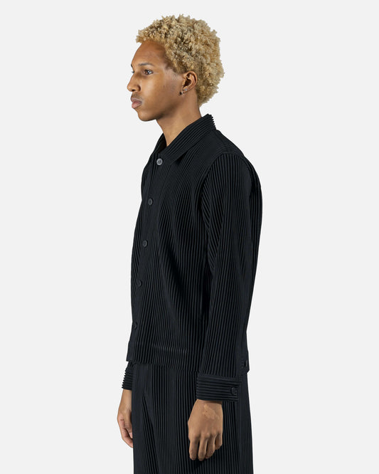 • Homme Plissé Issey Miyake Men's Jackets Pleated Trucker Jacket in Black