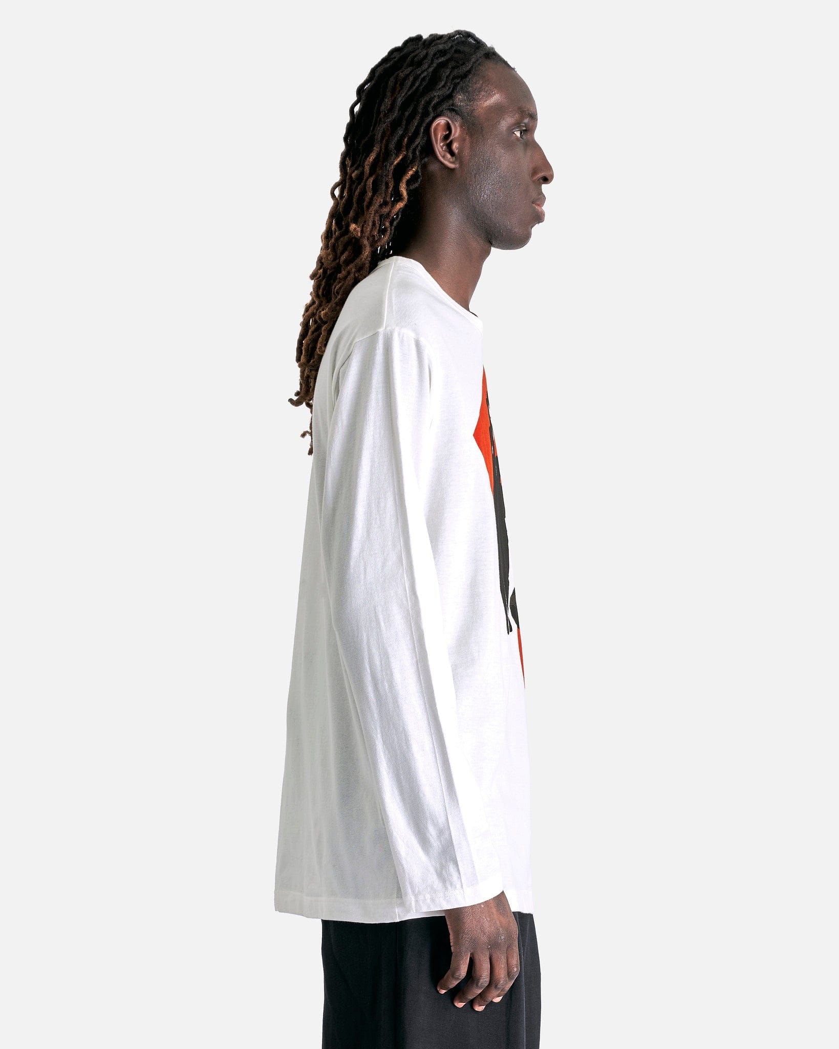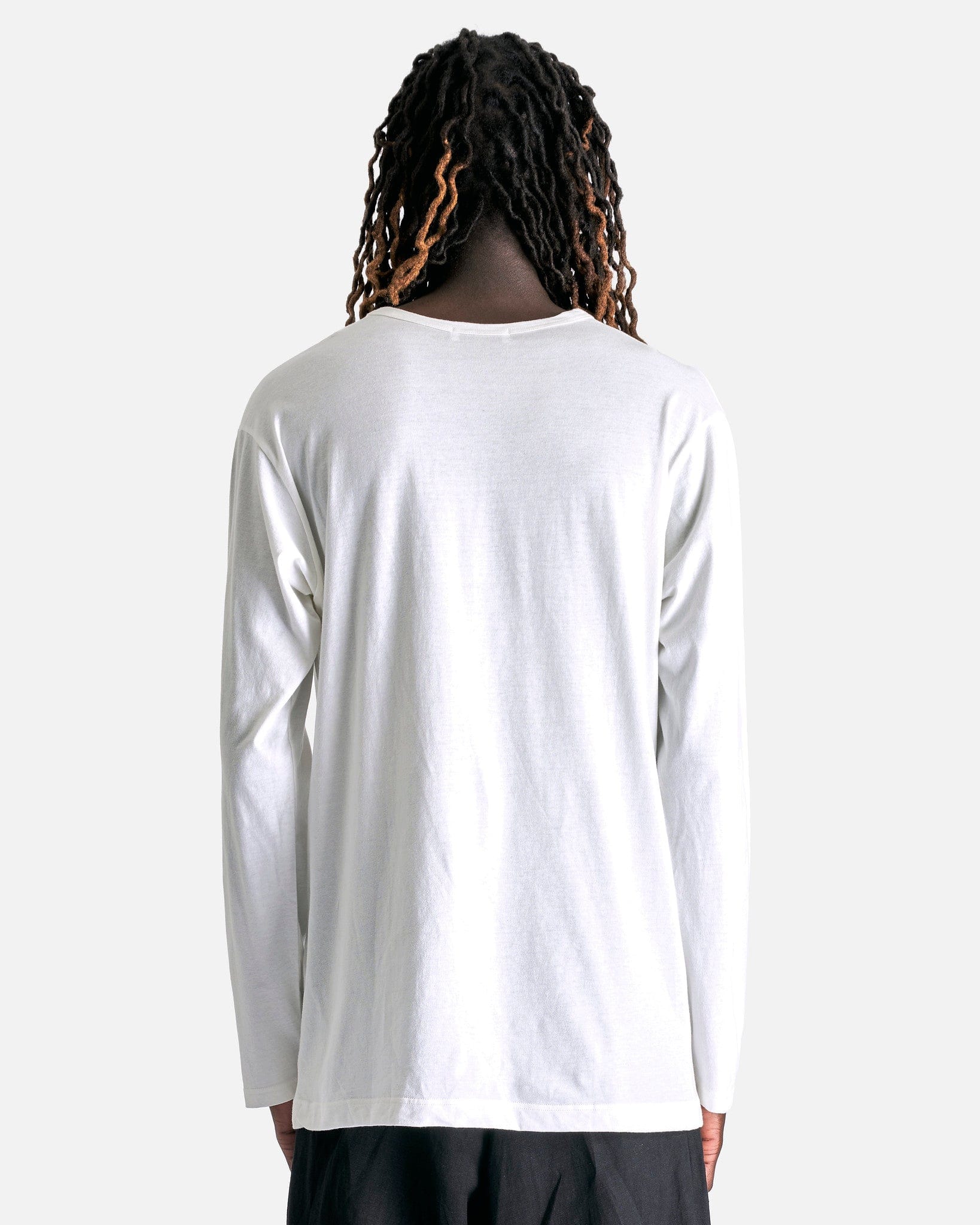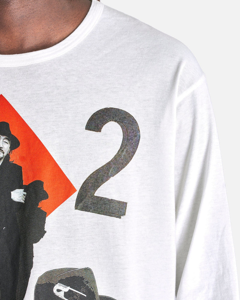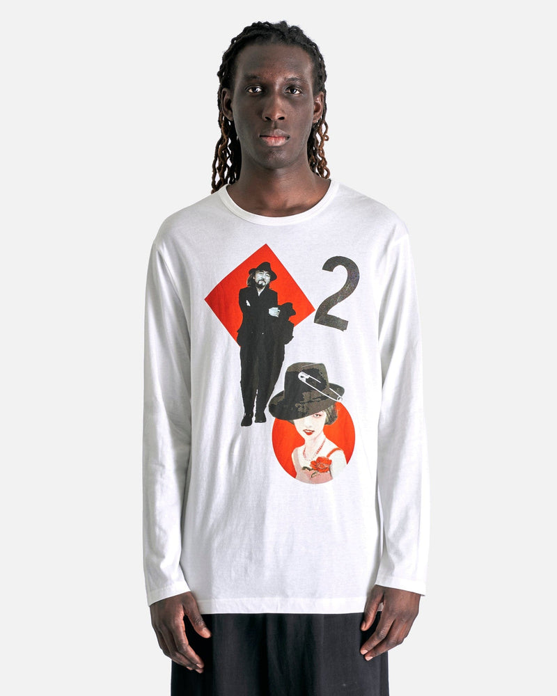 Yohji Yamamoto Pour Homme PT Long Sleeve in Off-White. This long sleeve is treated with a silicone fabric softener to enhance soft hand feel of the shirt and features a crewneck collar, printed graphics at the front and a straight hem.