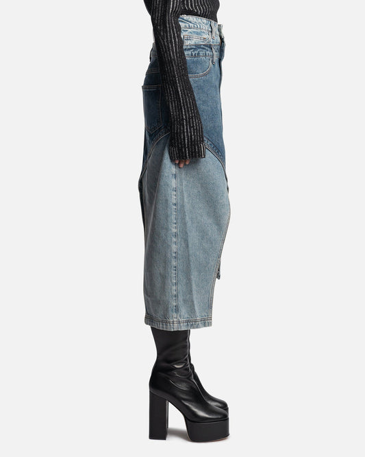 • Feng Chen Wang Women Skirts Double Waistband Denim Skirt in Blue