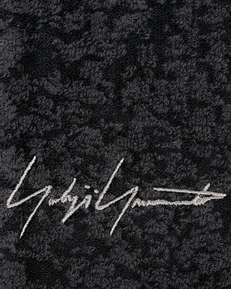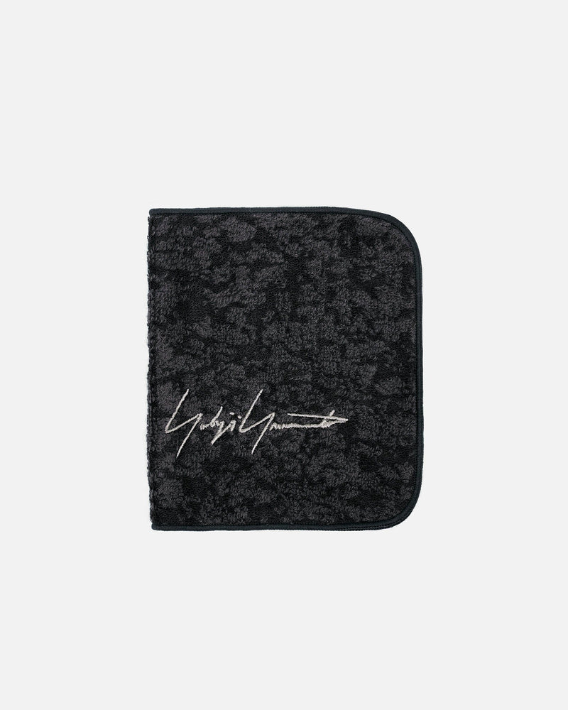 Yohji Yamamoto Pour Homme LP Towel Handkerchief Set in Black. This handkerchief set features a high-density weave for full absorbency, leopard print pattern and embroidered logo on the front. The set comes with a carrying pouch and 3 individual handkerchiefs.