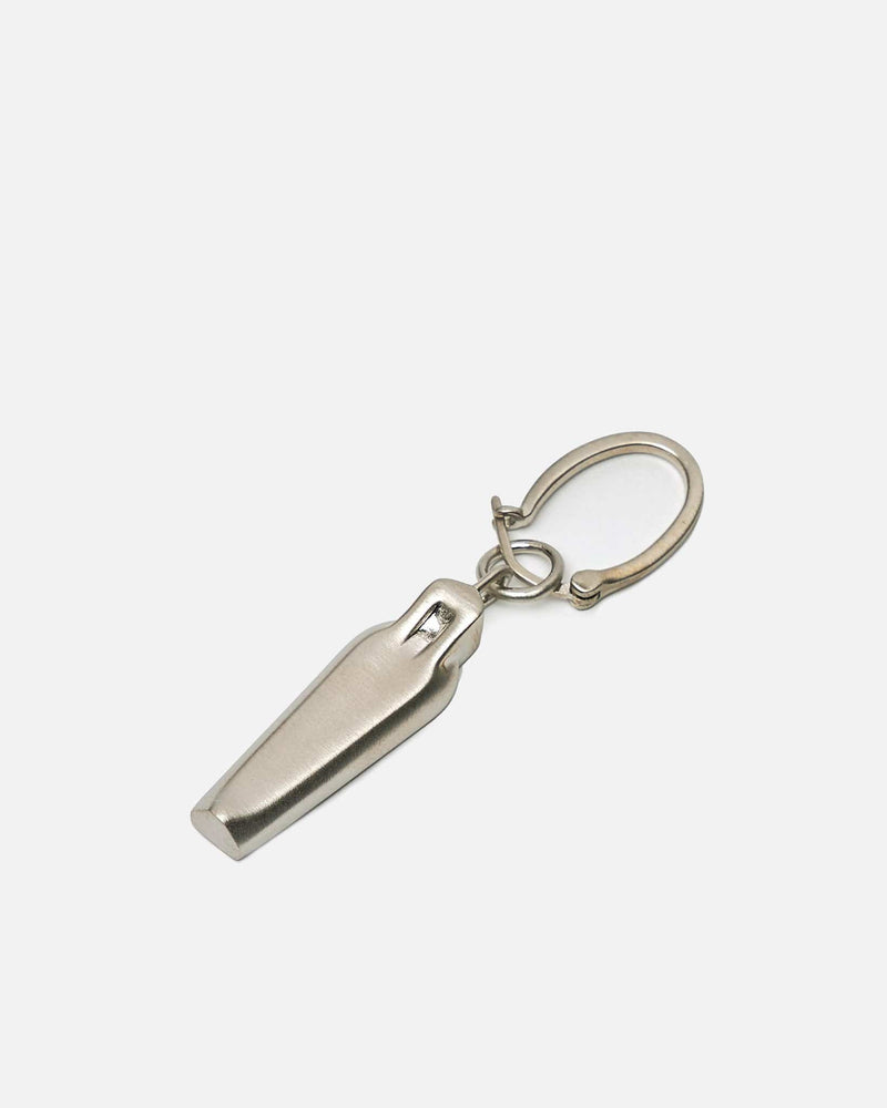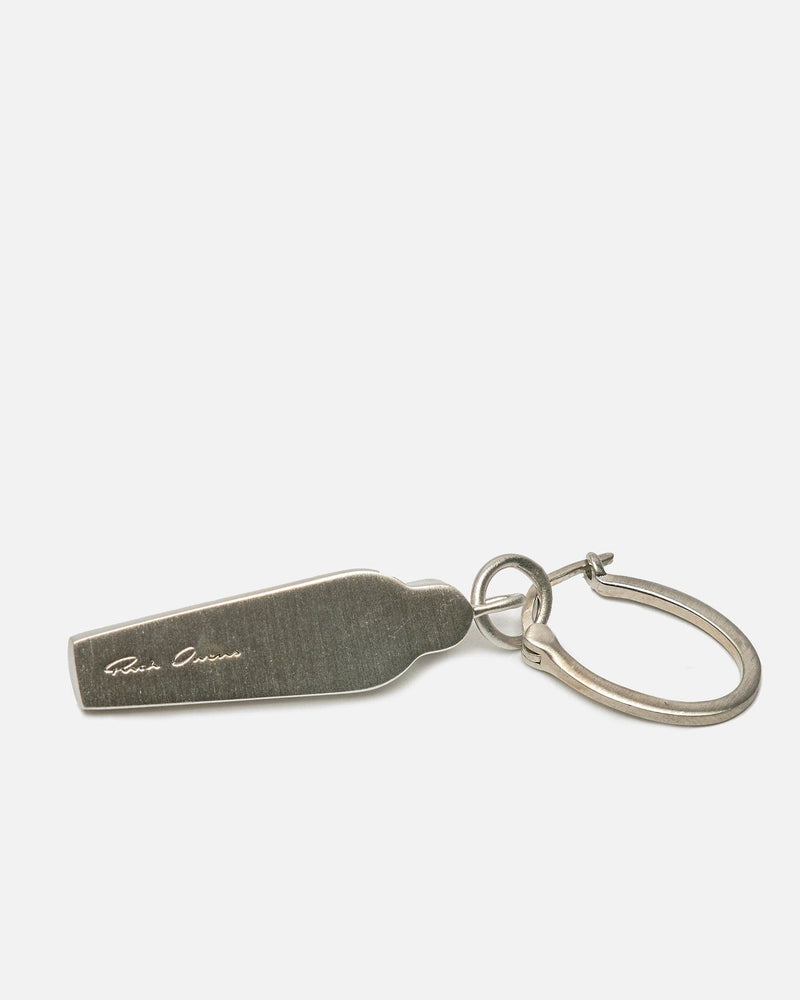 Rick Owens Sarcophagus Earring in Palladio. This earring features a sarcophagus charm, ringlet securing a hinged-post fastening and engraved logo on the opposite side.