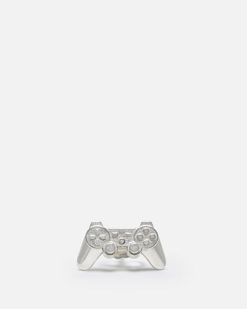 Secret of Manna PlayStation control earring in silver. This earring is made of sterling silver and features butterfly clasp closure.