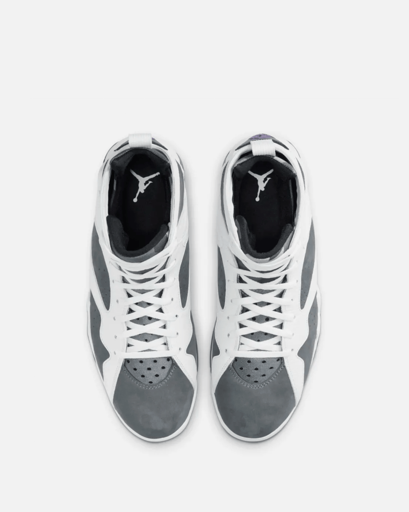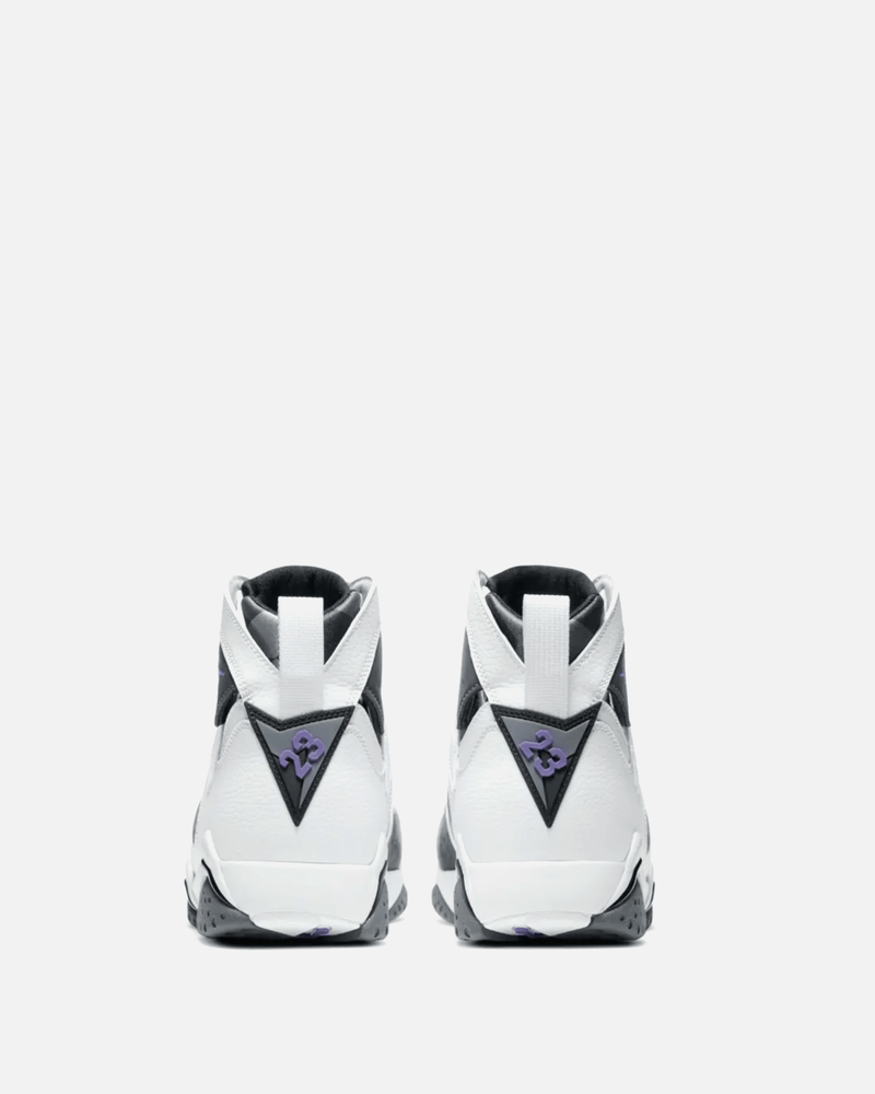 Upon its OG release in 1992, the Air Jordan 7 met MJ at the peak of his powers. His Airness dawned the silhouette en route to claiming a second consecutive league title before leading the US to a series of transcendent victories on the international stage in Barcelona, capturing imaginations across the world. In April 2006, the silhouette returned in a new colour scheme that quickly became iconic in its own right. This release recreates that makeup by covering the Air Jordan 7 in contrasting hues of Flint Grey and Court Purple. Other familiar details include nubuck quarter panels, white leather overlays, a multi-print tongue and a matte-finished outsole.