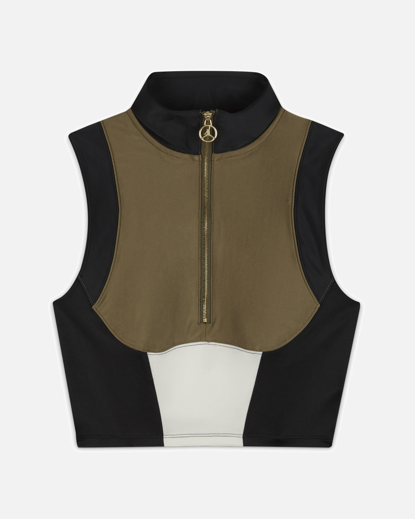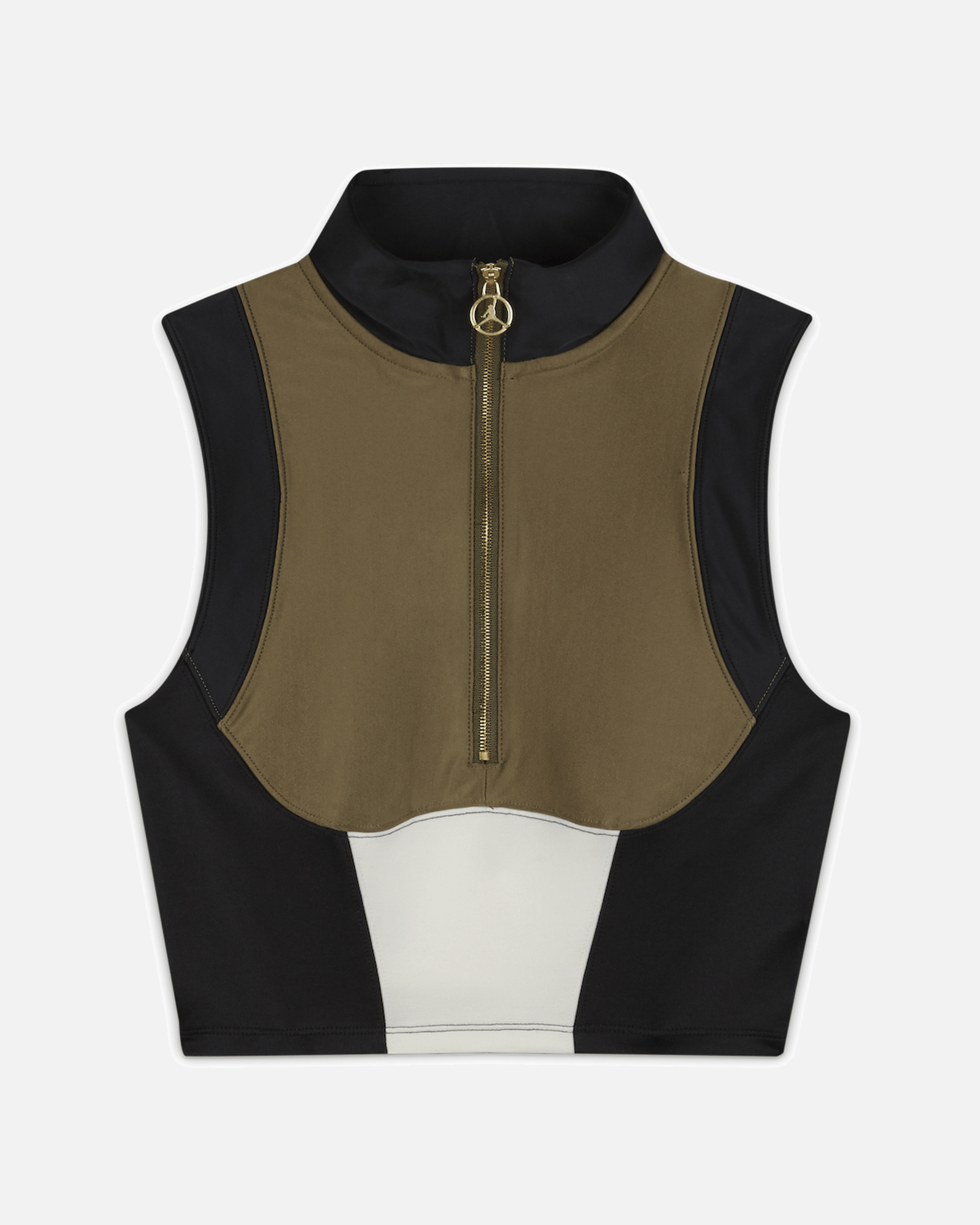 The Jordan Body Con Crop Top is made with stretchy fabric for a close, comfortable fit. It has distinct design lines with flat-seam stitching and a half-zip neckline.