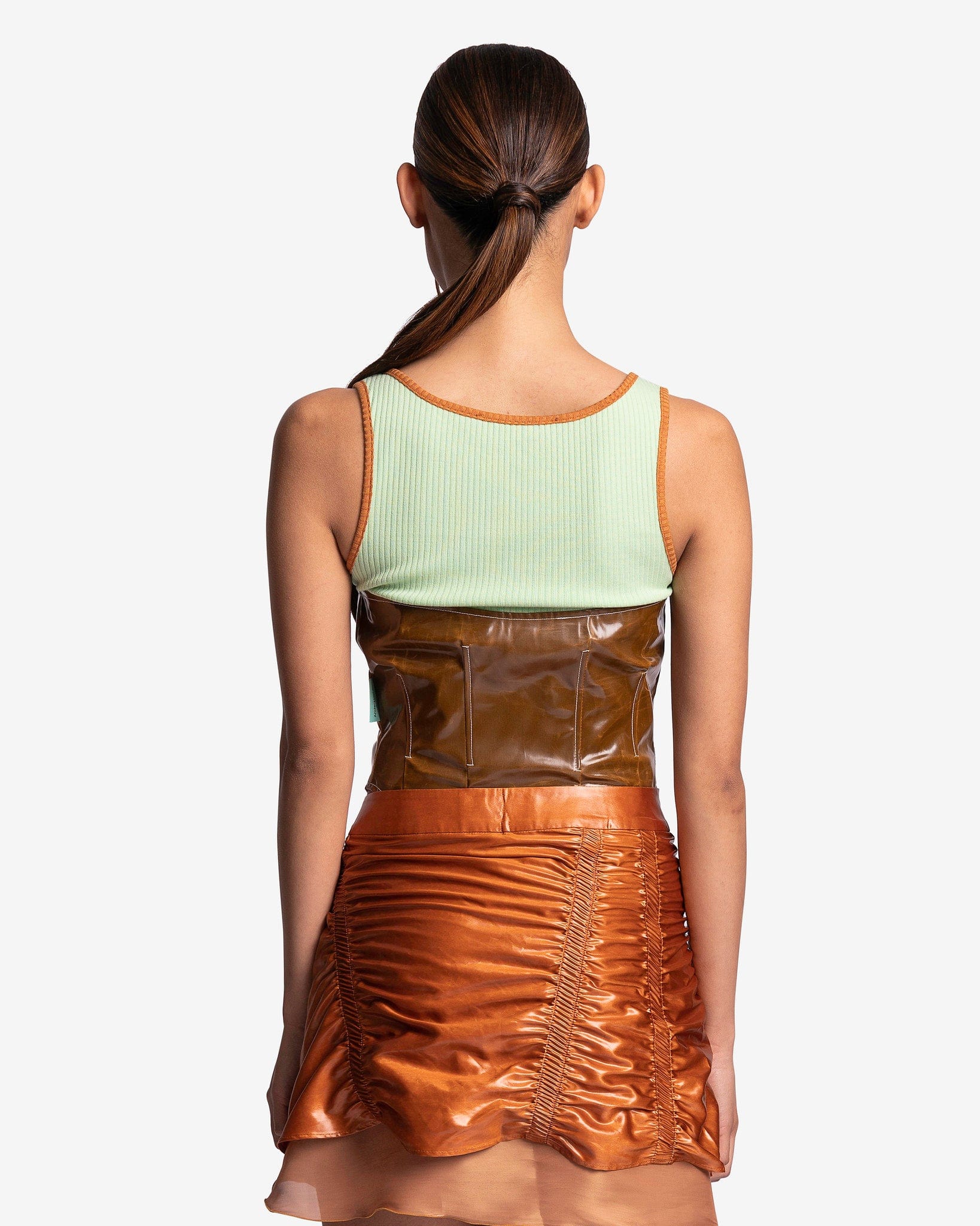 Andersson Bell women's lace up vest in brown. This vest is layered with a paneled design and shiny outer material.