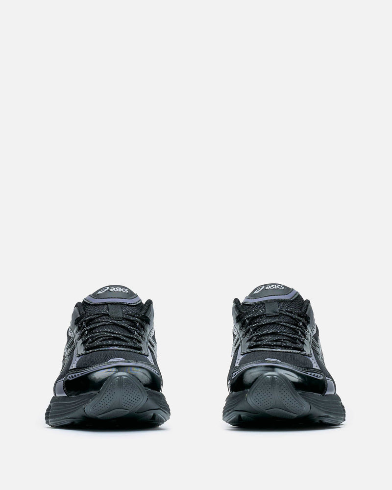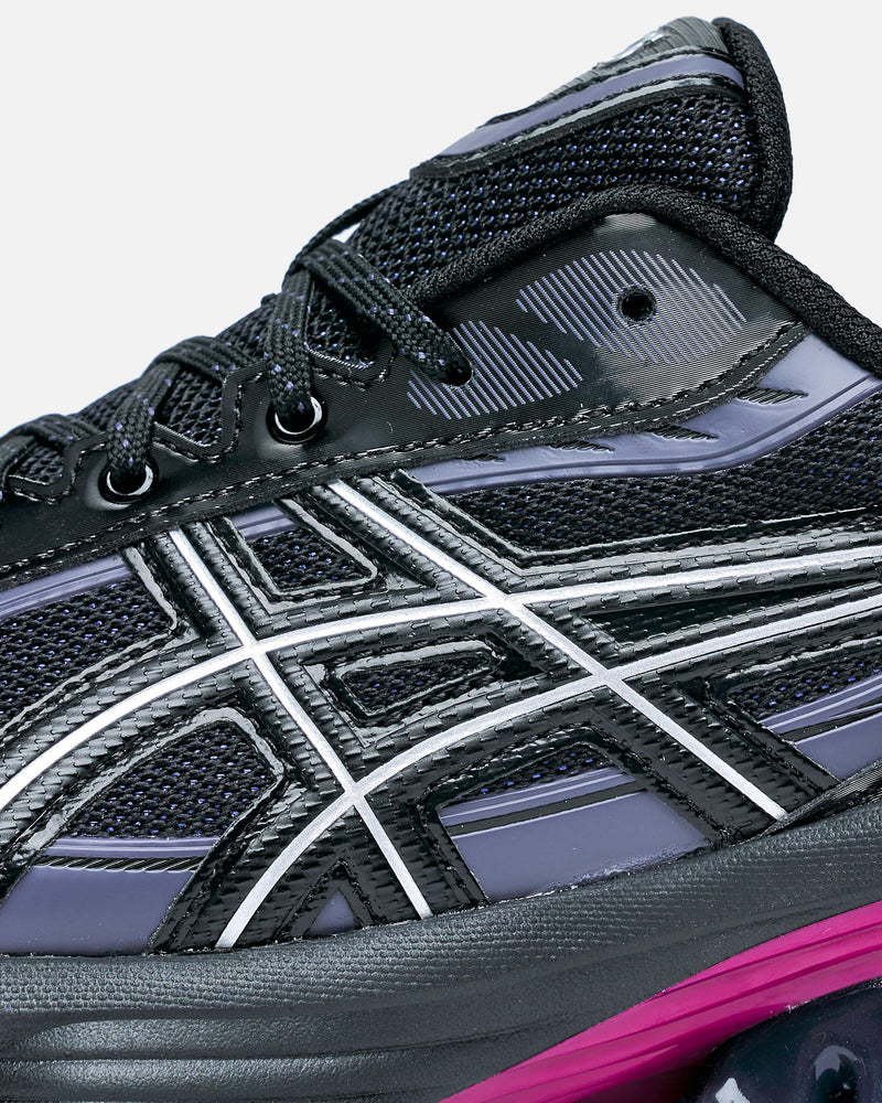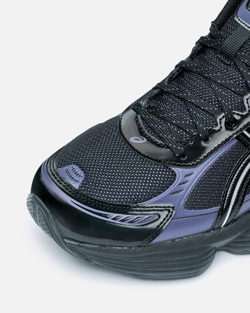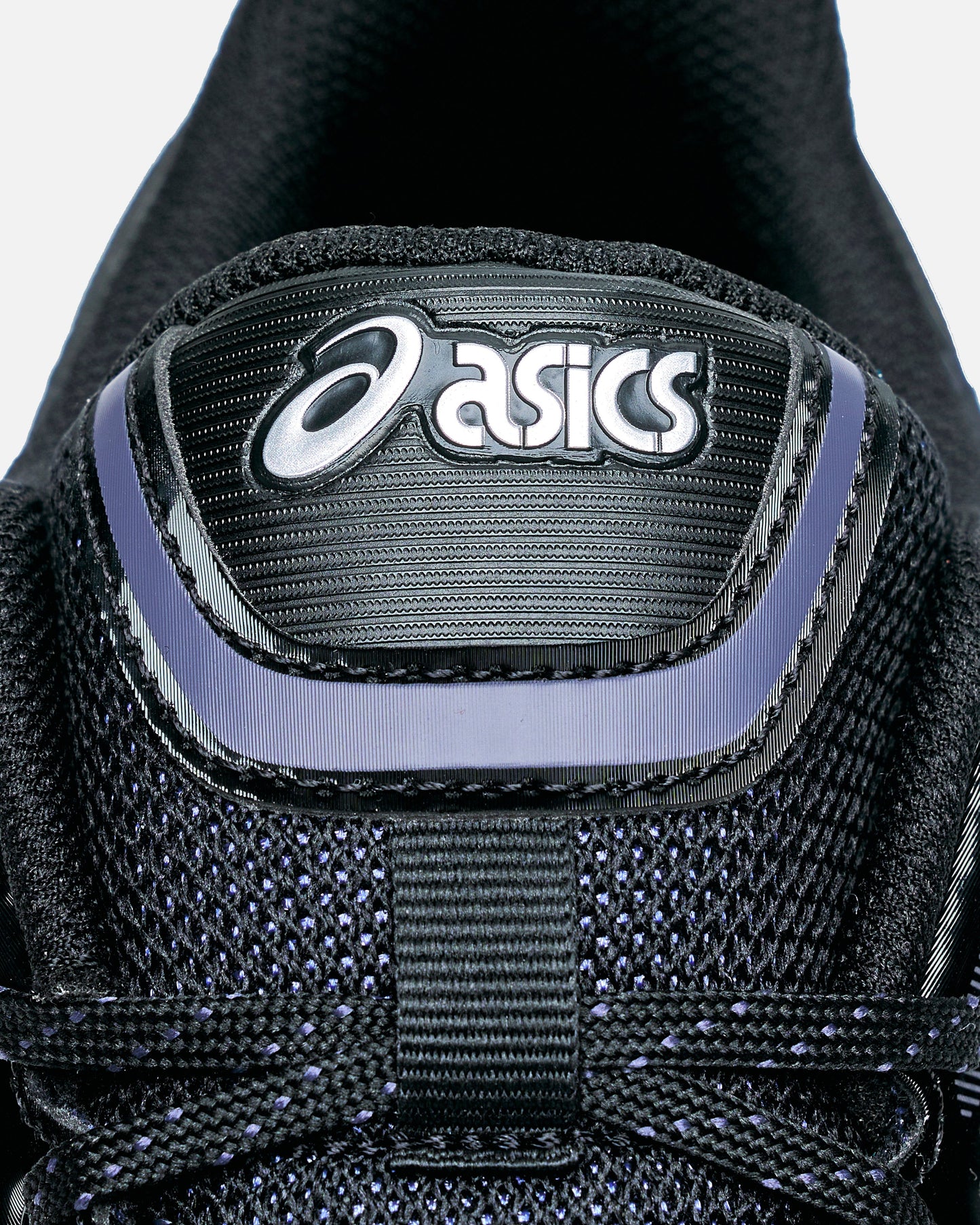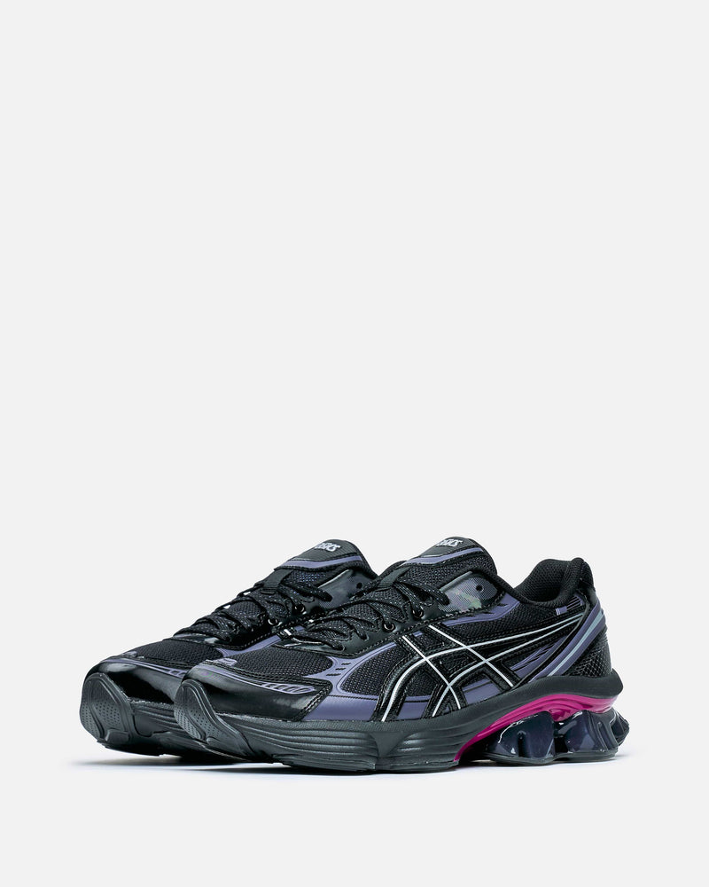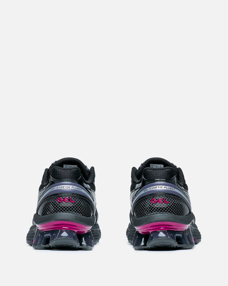 Asics Gel-Kinetic Fluent in Black. This low-top sneaker features a webbed mesh base with synthetic leather overlays and welded structures across the upper and at the sole FF BLAST™ PLUS ECO cushioning and Scutoid GEL® technology. A synthetic leather logo patch is stitched on the tongue with additional branding on the heel.
