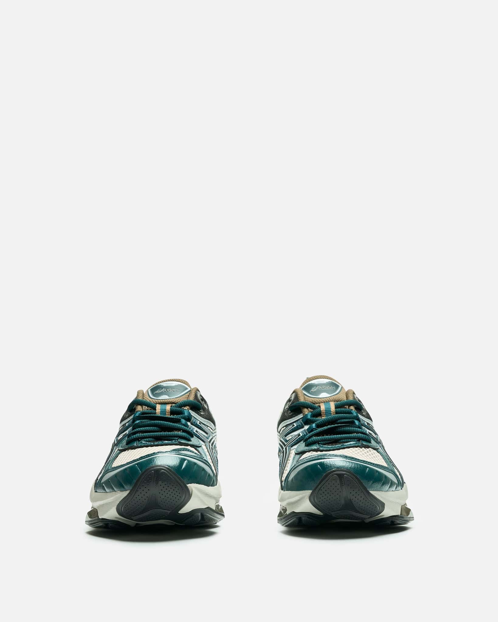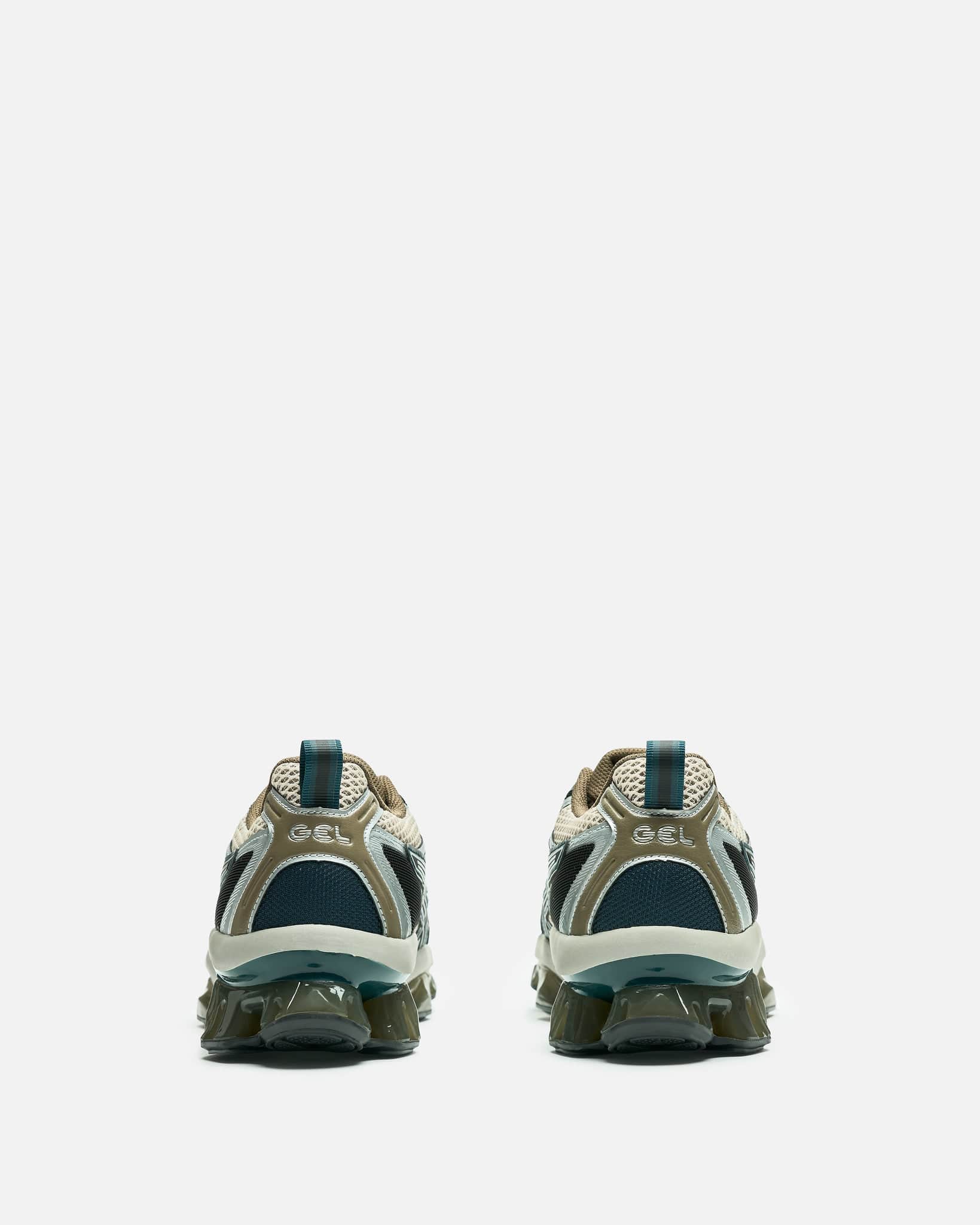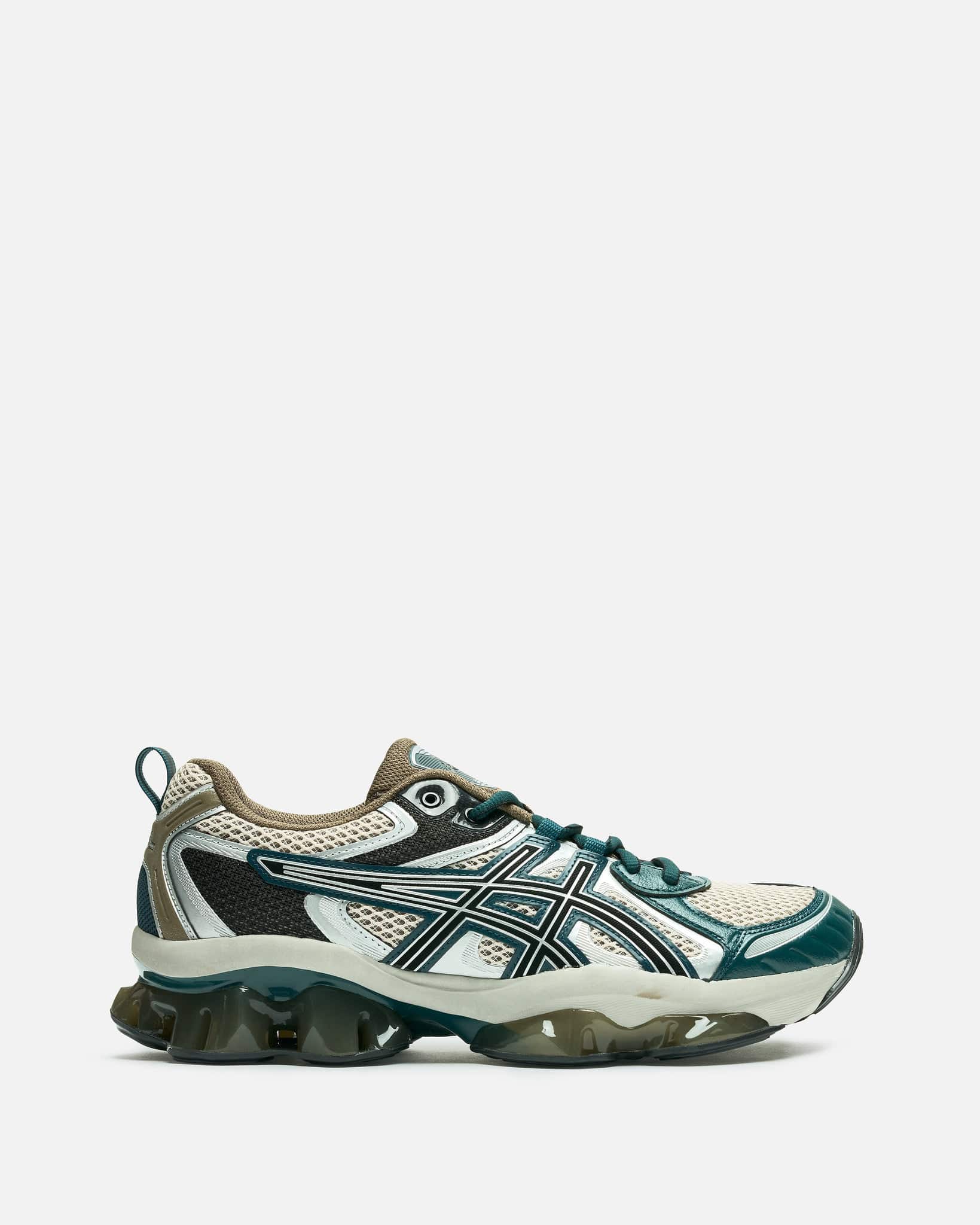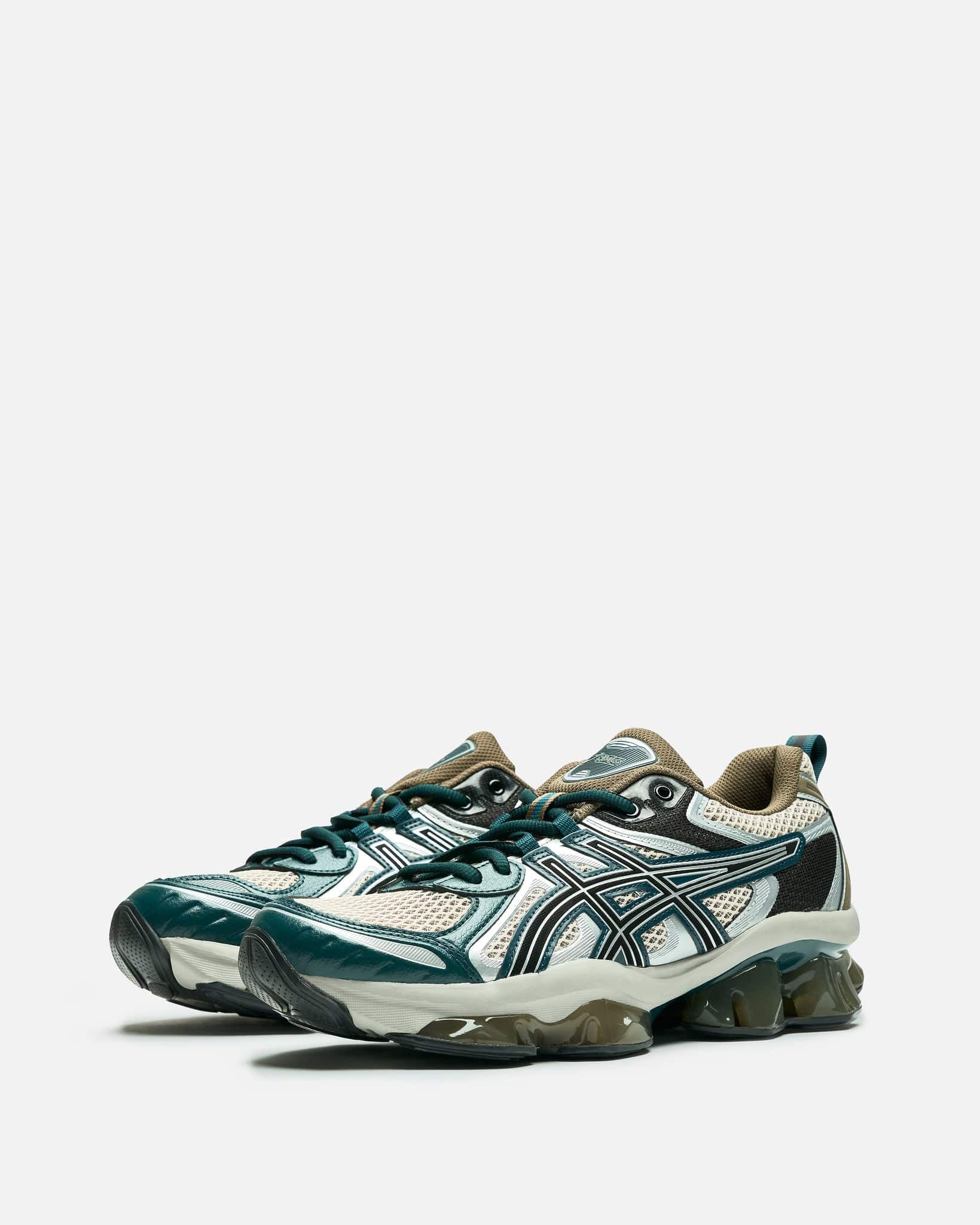 Asics Gel-Quantum Kinetic in Oatmeal/Dark Taupe. These shoes draw inspiration from iconic Asics running footwear. They feature lace-up fastening, Scutoid GEL® technology that offers sound 3D geometry and an off-axis structure and FF Blast cushioning for everyday comfort.