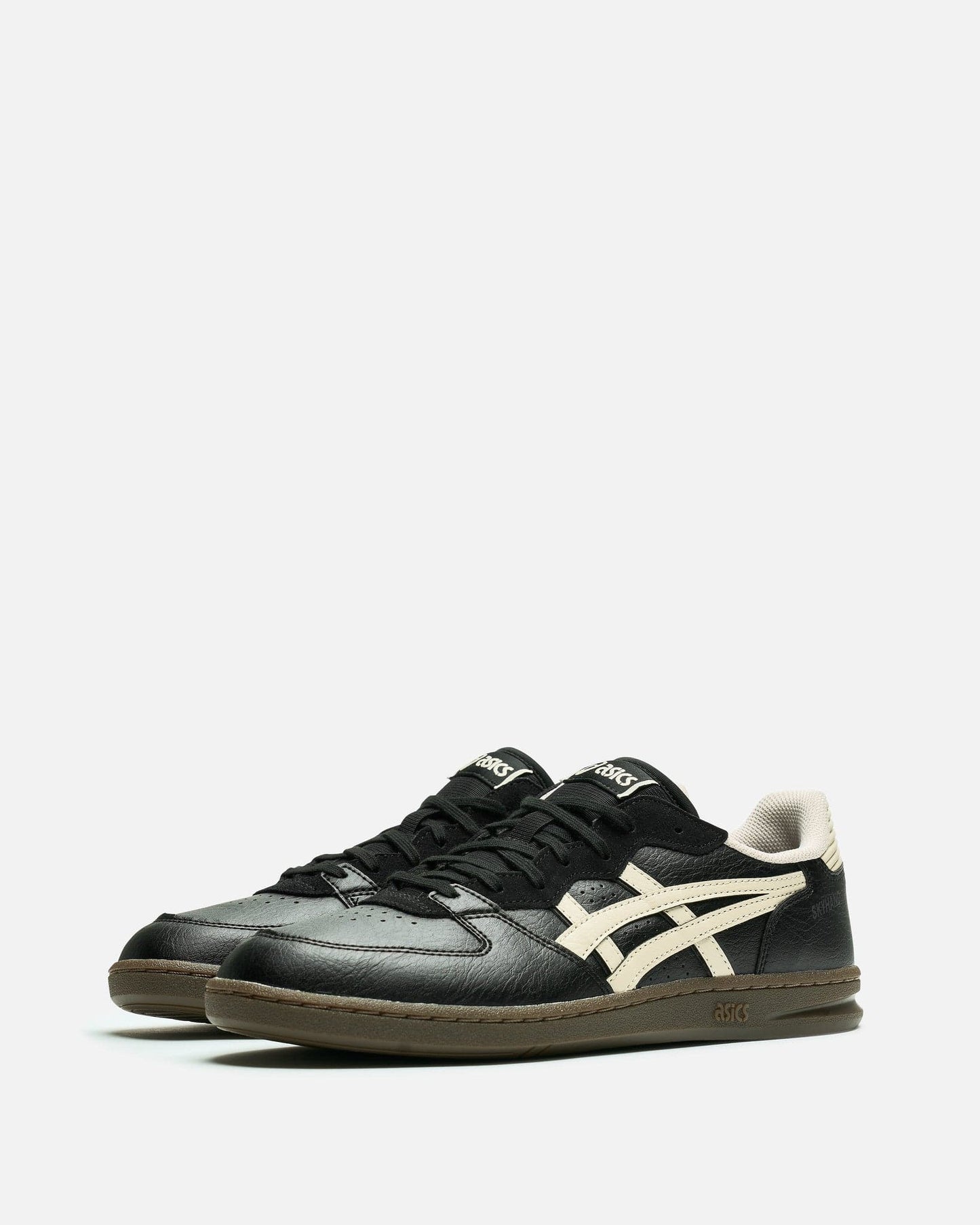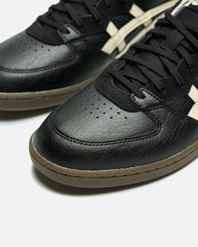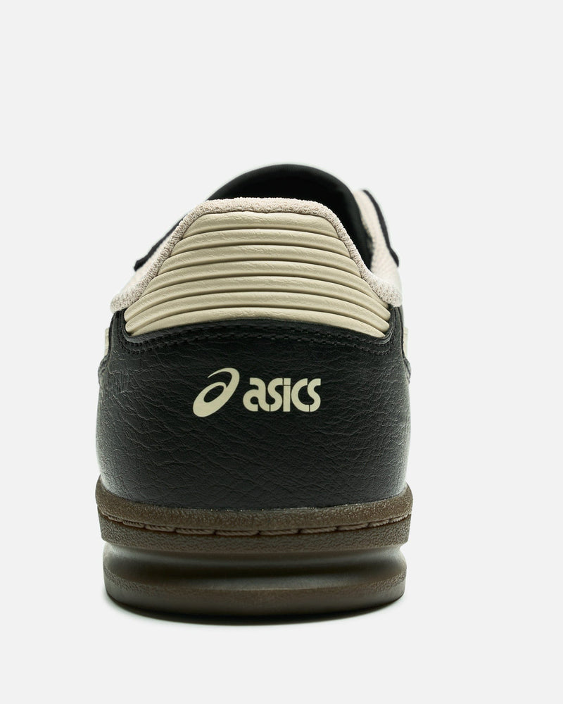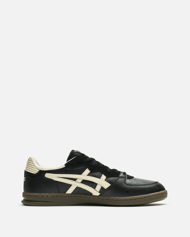 Asics Skyhand OG in Black/Oatmeal. Based on Asics' 1990 handball shoe, this iteration features minimalistic suede paneling, lace-up fastening, FLYTEFOAM® PROPEL cushioning and an EVA heel wedge.