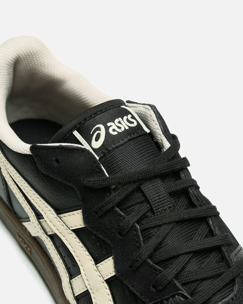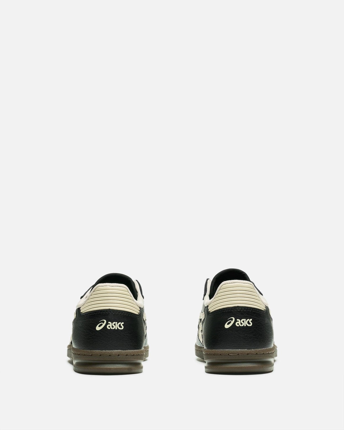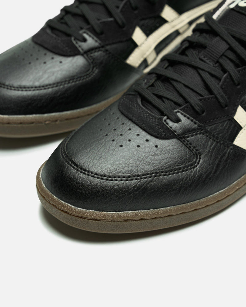 Asics Skyhand OG in Black/Oatmeal. Based on Asics' 1990 handball shoe, this iteration features minimalistic suede paneling, lace-up fastening, FLYTEFOAM® PROPEL cushioning and an EVA heel wedge.