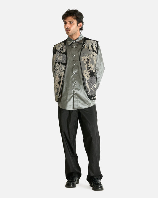 These pants are crafted from a lightweight silk taffeta featuring a zip fly and two button closure, 4-pocket styling and a slight taper at the hem.