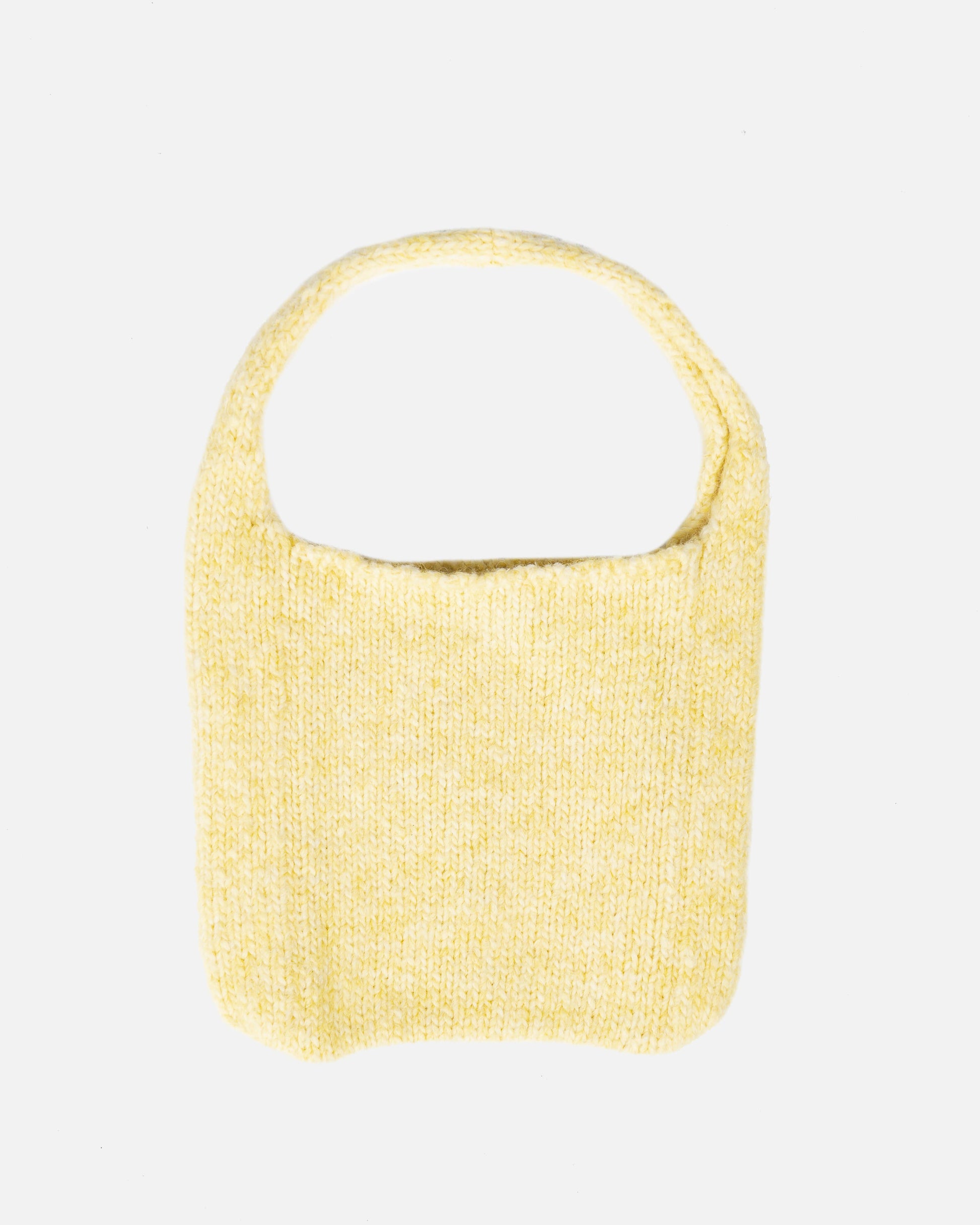 Paloma Wool women's knit handbag in a sage green color. Micro bags are an essential for any wardrobe, adding a playful hint to whatever outfit they're paired with. Shades of yellow are muddled together to create this captivating aquamarine color.
