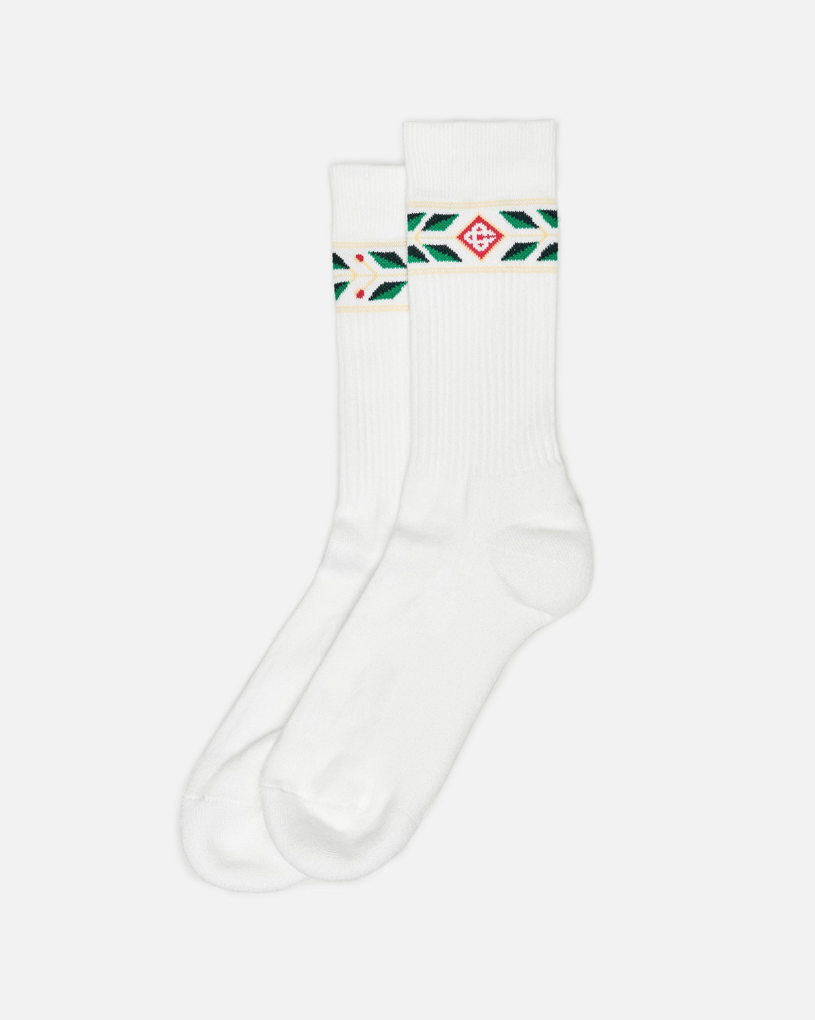 Casablanca Ribbed Sport Sock in Laurel. At each side of the sock is Casablanca intarsia knit wreath branding and features ribbed cuffs above the ankle.