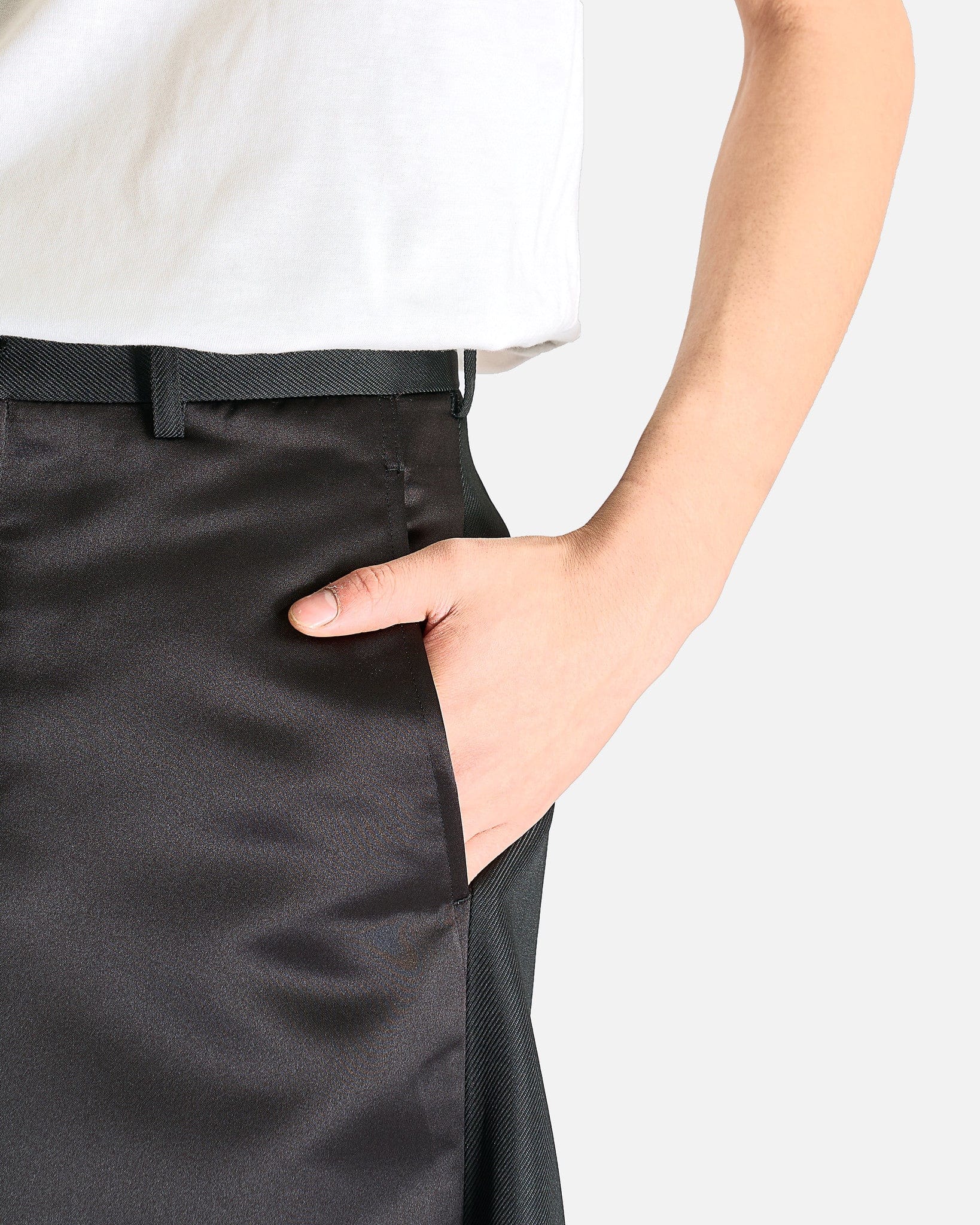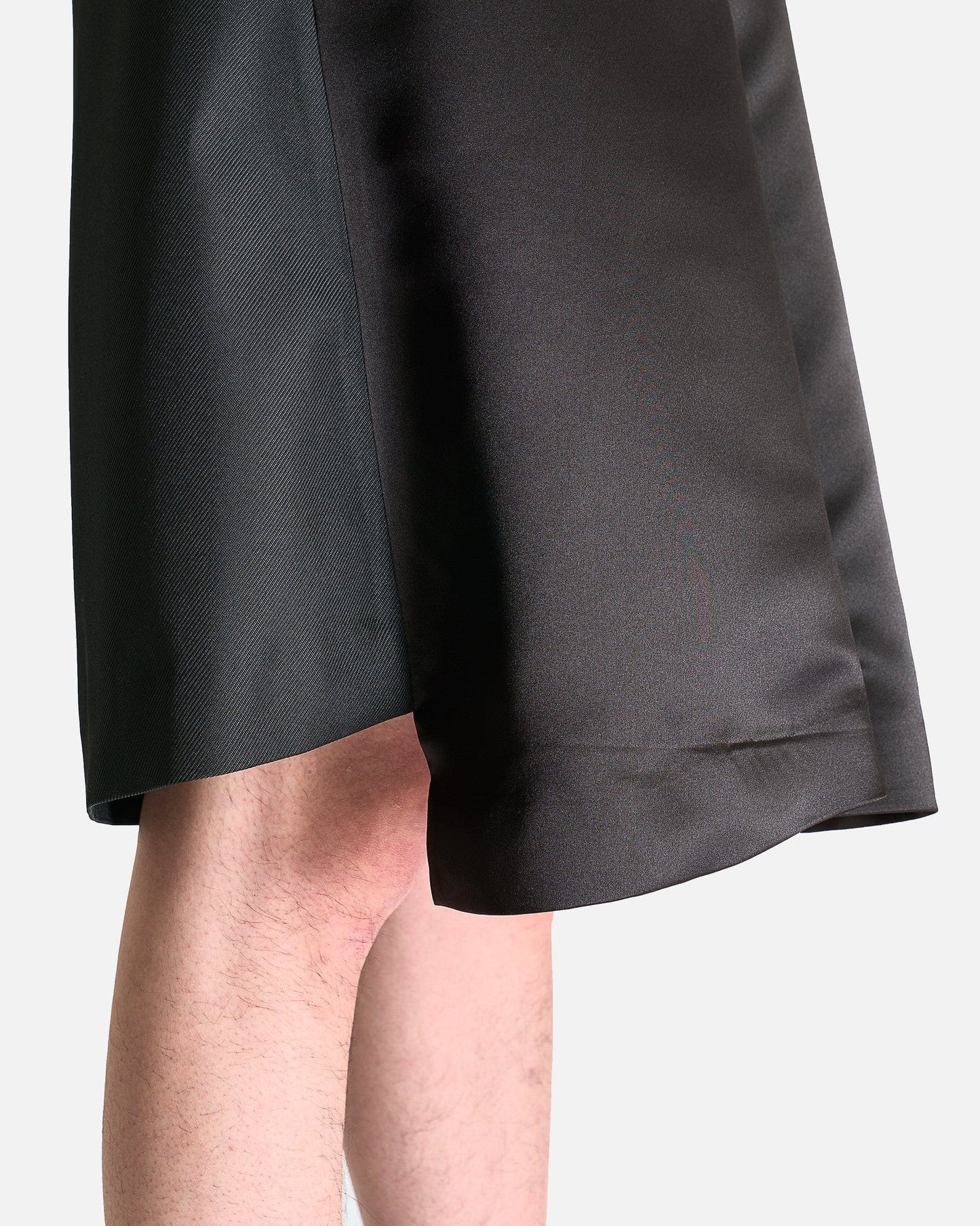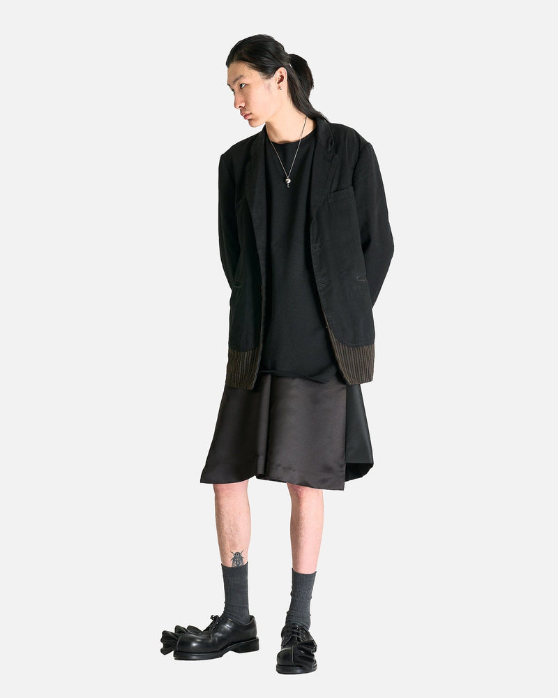 Comme des Garçons HOMME PLUS Shorts in Black. These shorts are constructed with contrasting fabrics and feature a zip fly and button closure, 4-pocket styling and a draped cuff at the front.