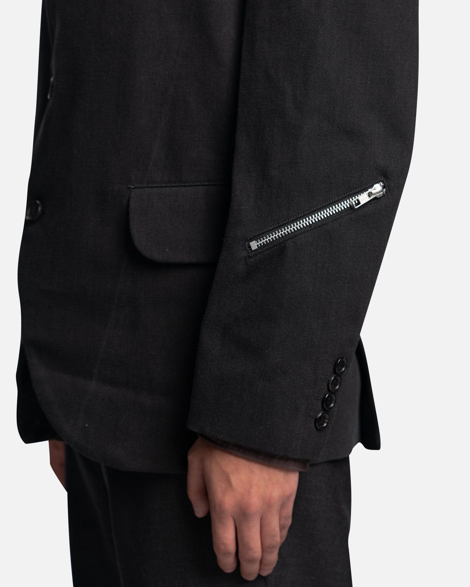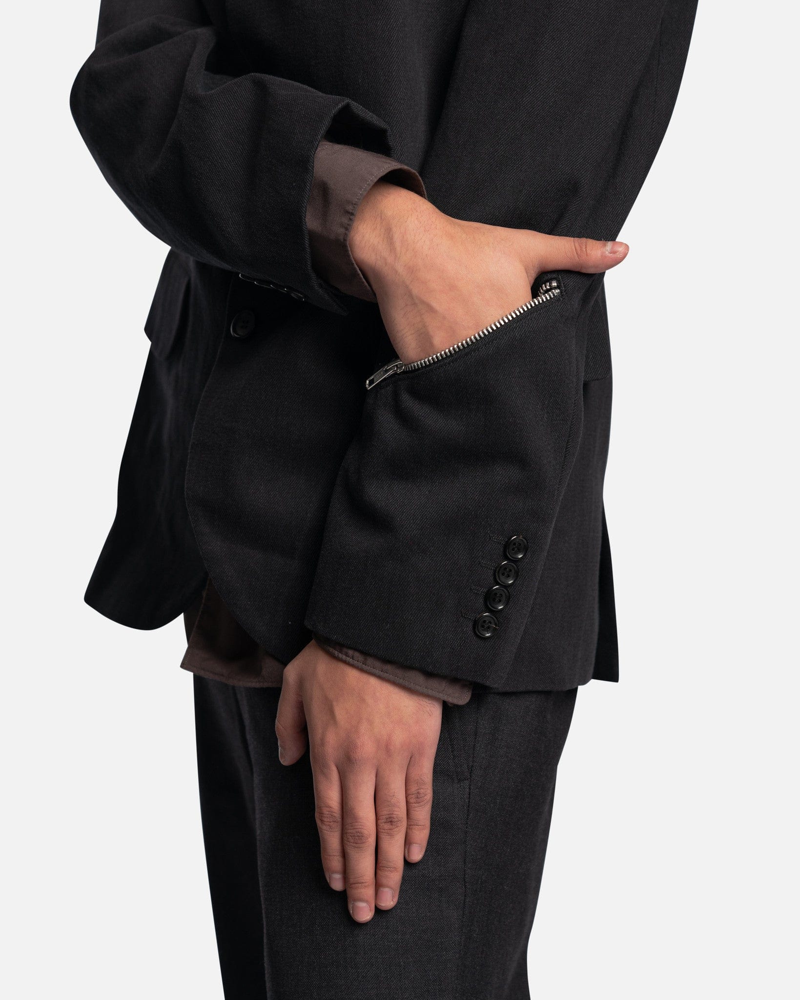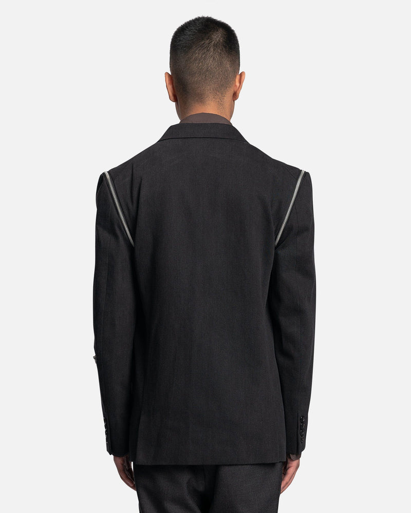 Comme des Garcons Homme Deux men's zip detailed blazer in dark grey. This blazer features notched lapel and functional zippers at the shoulders and on the sleeve.