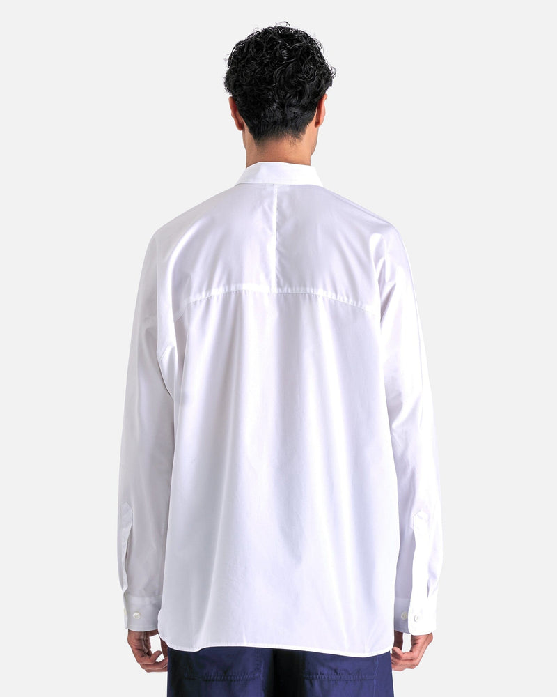 Dries Van Noten Caraby Shirt in White. This shirt features a spread collar, button closure, combined front and back yoke and single button cuffs.
