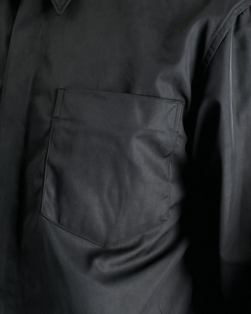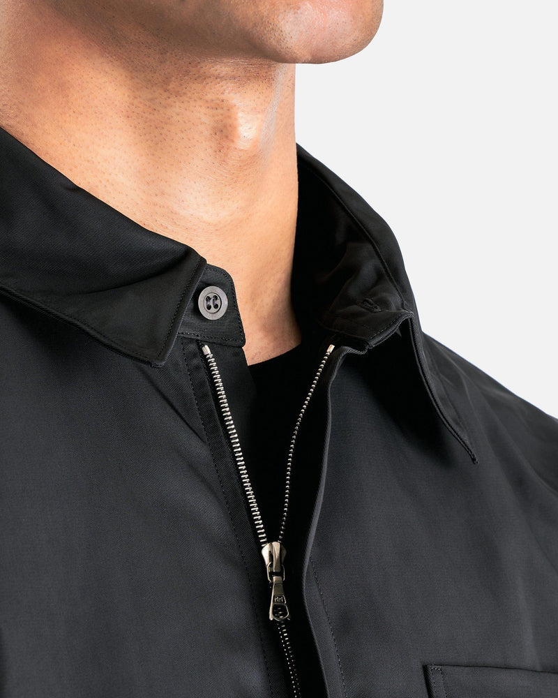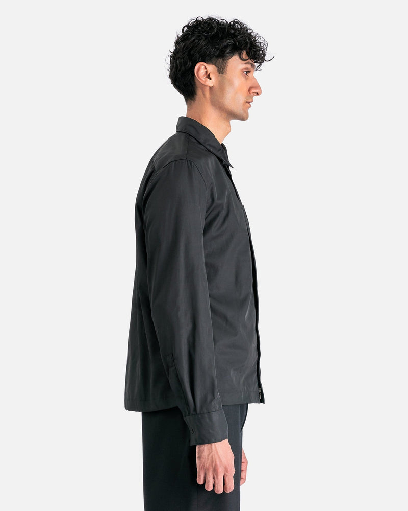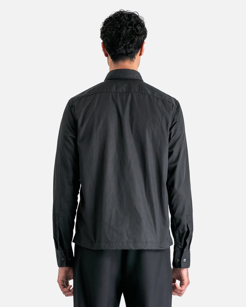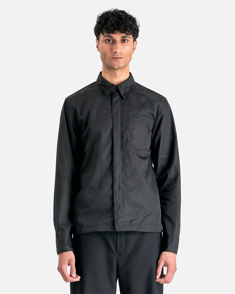 Dries Van Noten Corran Shirt in Black. This shirt features a spread collar, concealed two-way zip closure, patch pocket on chest and two-button barrel cuffs.