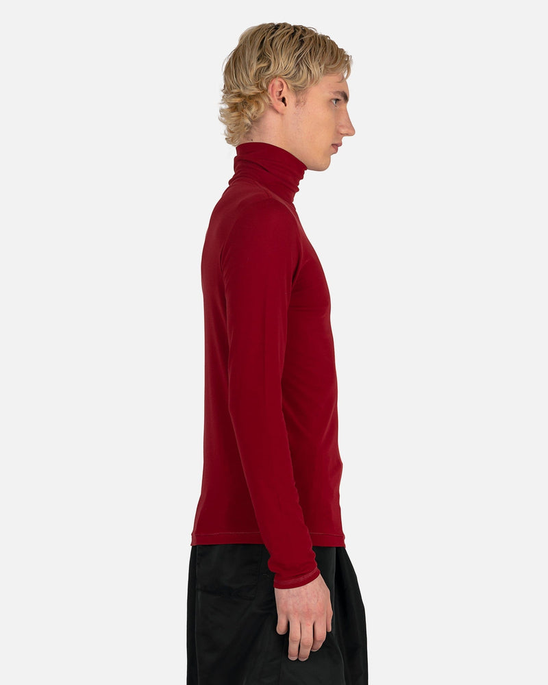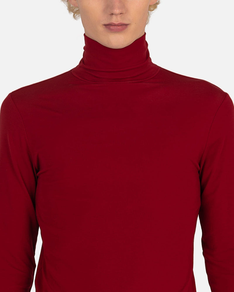 Dries Van Noten men's turtleneck in red. This slim fit top has long sleeves and a straight hem.