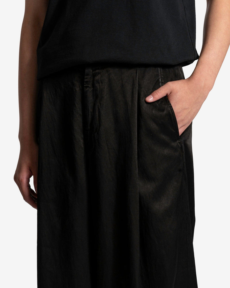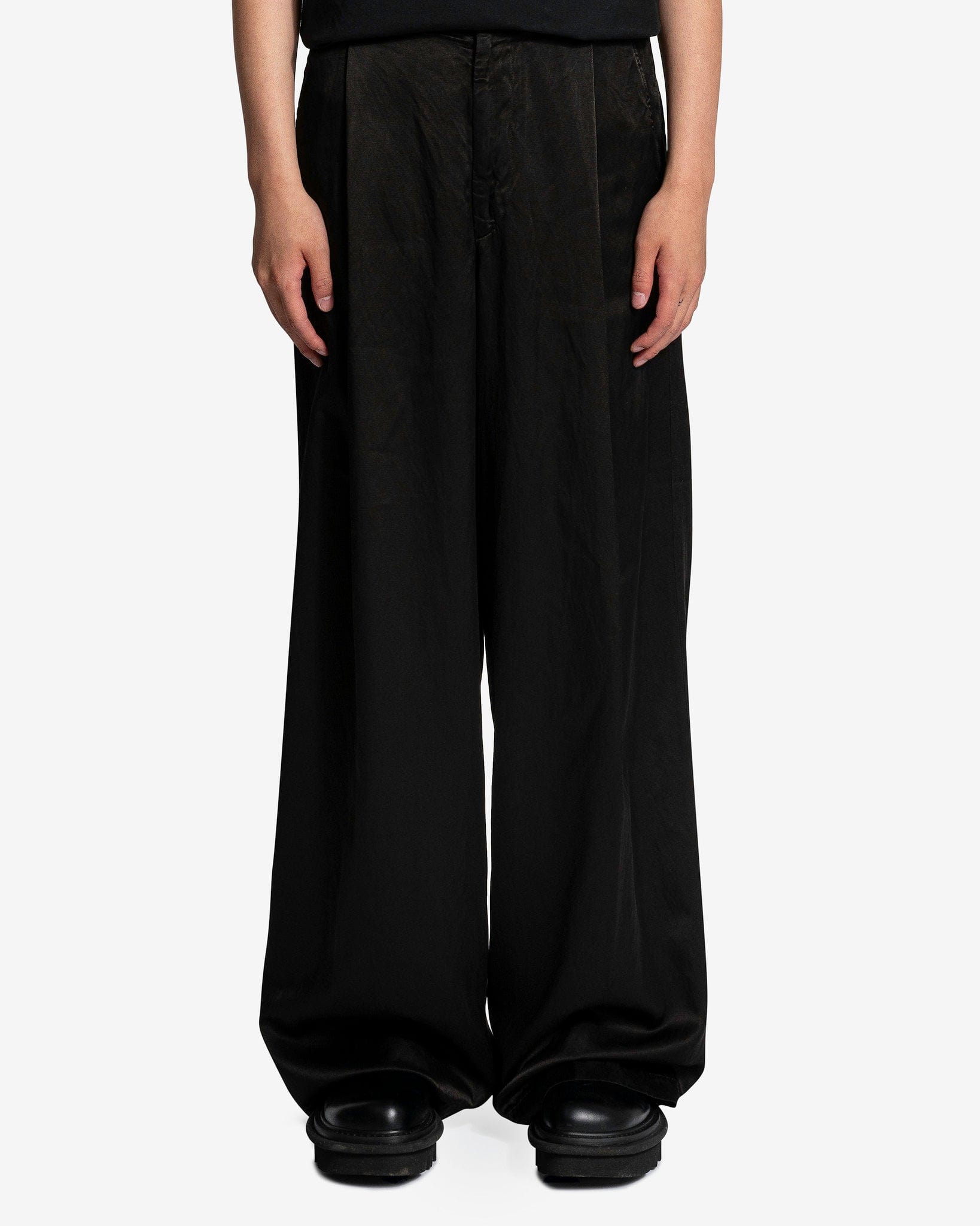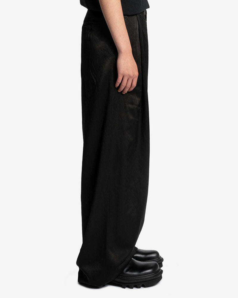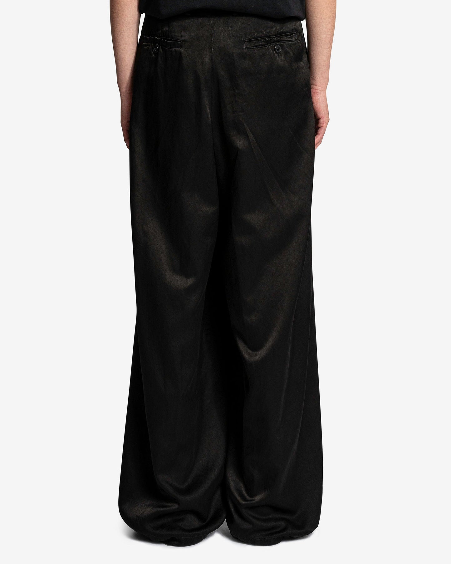 Dries Van Noten men’s Pepper Bis Pants in Black. These exaggerated wide-leg pants feature a satin-like effect with front pleats, zip fly and button fastening, belt loops and side and back pockets.