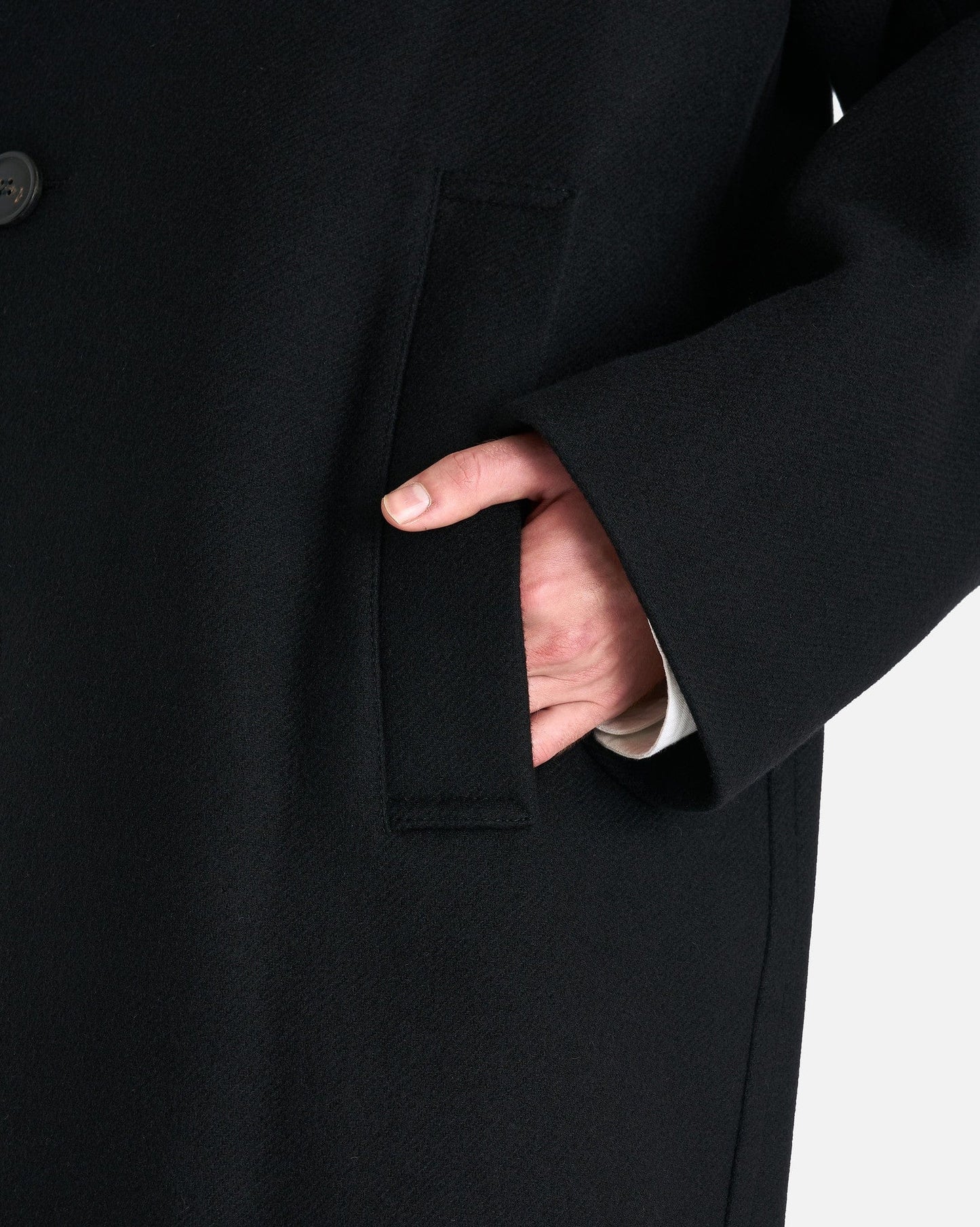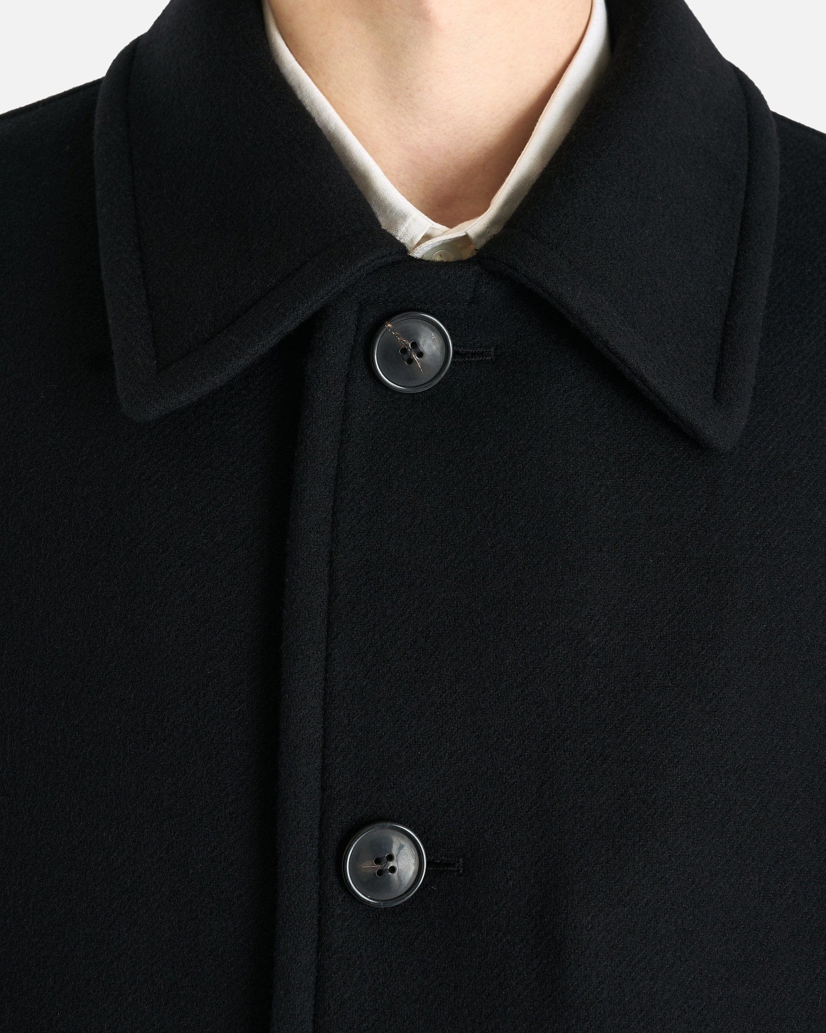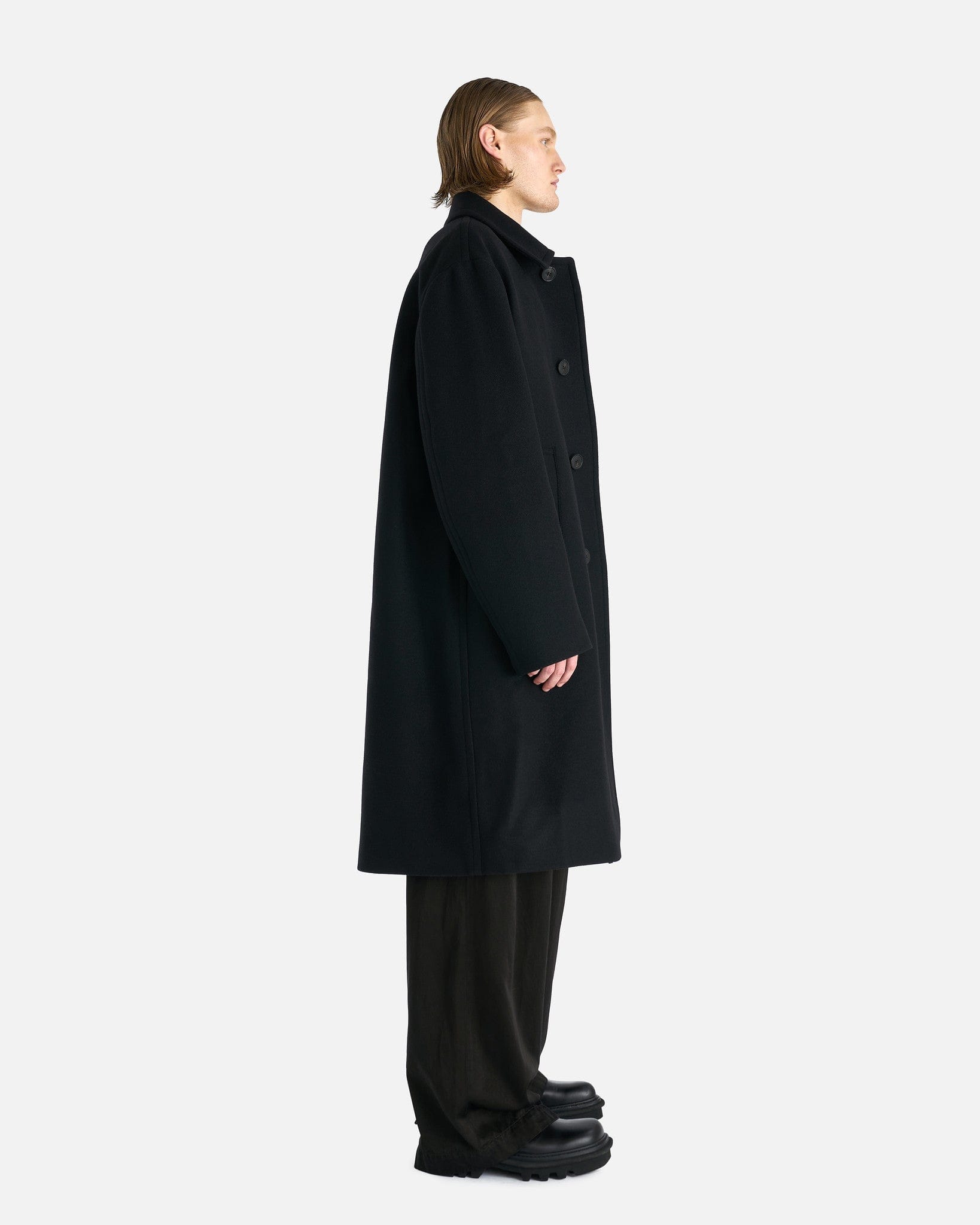 Dries Van Noten men’s Redmore Coat in Black. This coat features a single-breasted profile, classic collar, button fastening throughout, horn buttons and is fully lined.