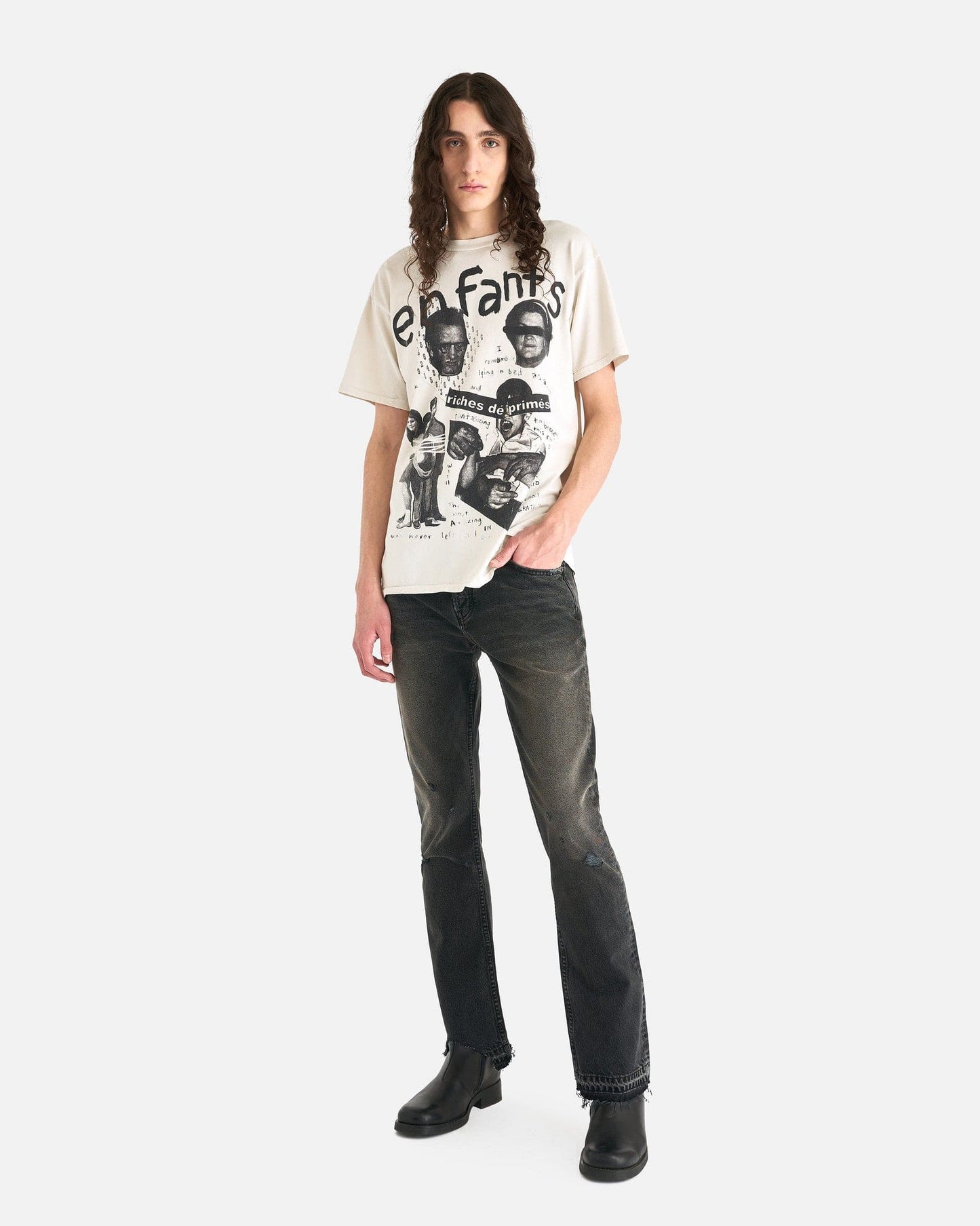 These jeans are constructed with Japanese denim, five pocket design, mid-rise construction, embossed logo patch, button fly, distressing throughout and ERD branded hardware.