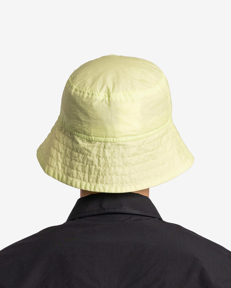 Dries Van Noten men's bucket hat in lime green. This hat is made with water repellant nylon and a stitched brim.